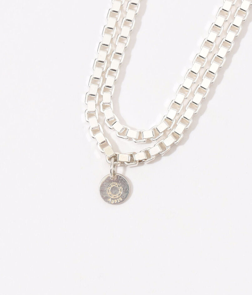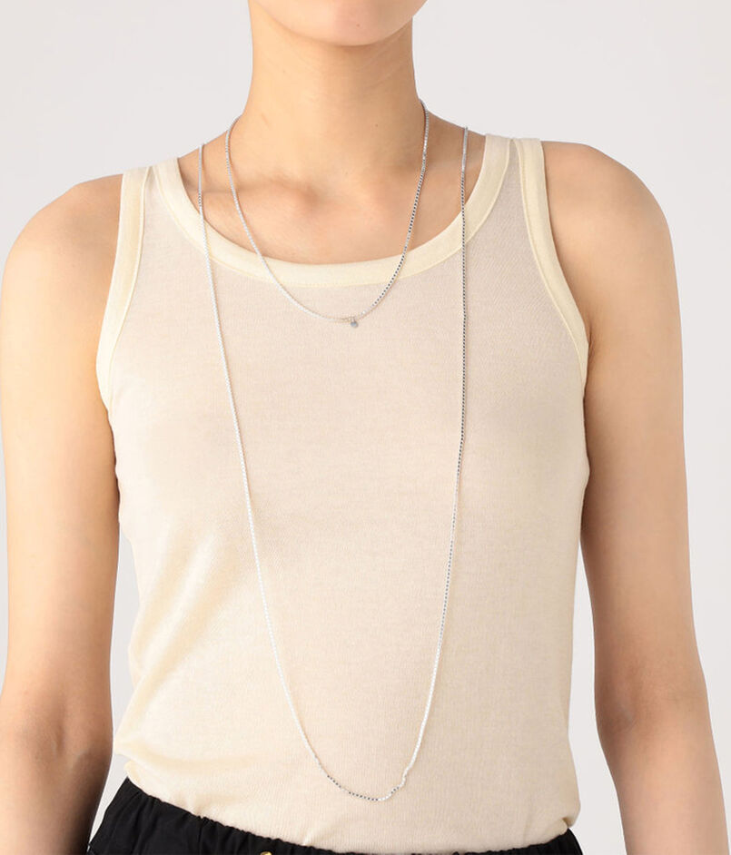 二連にしたり、たすき掛けのようにしたり、自由な発想でアレンジをお楽しみいただけるロングネックレス。