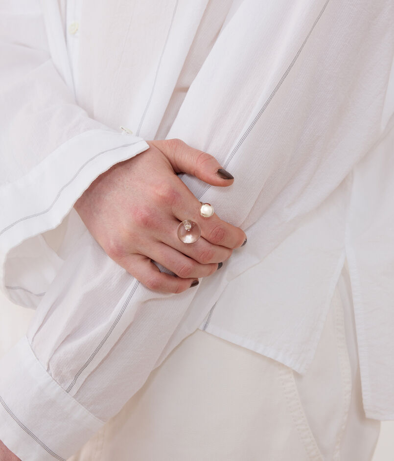 着用するとリング部分が隠れ、指にボールが乗っているような印象に。