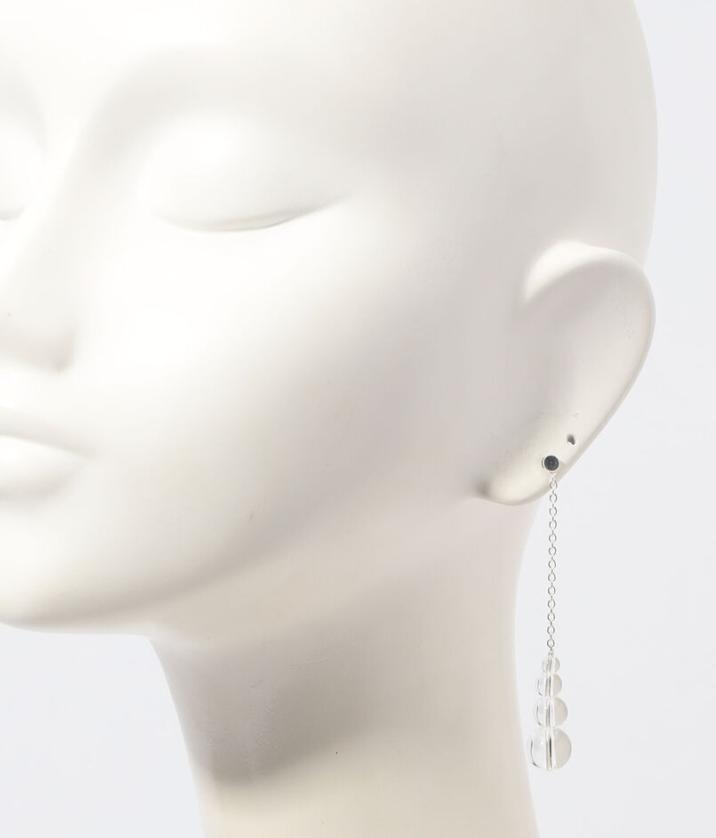 水晶のビーズとシルバーチェーンのコンビネーションピアス。