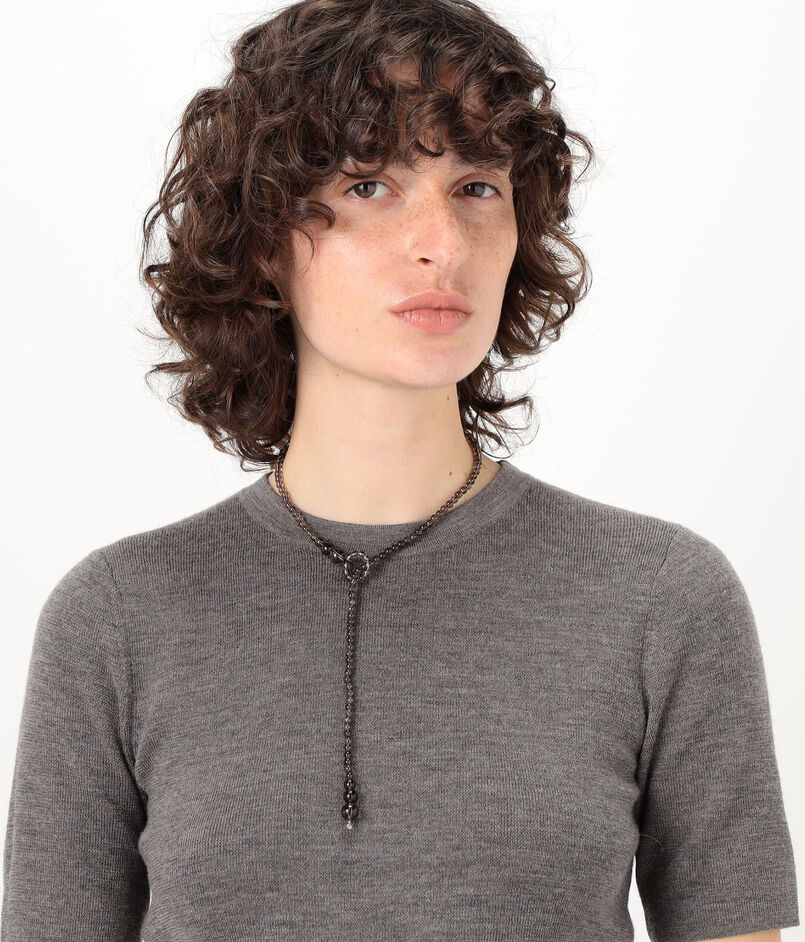 一粒ずつ表情の異なるビーズが首元にニュアンス感を演出してくれます。