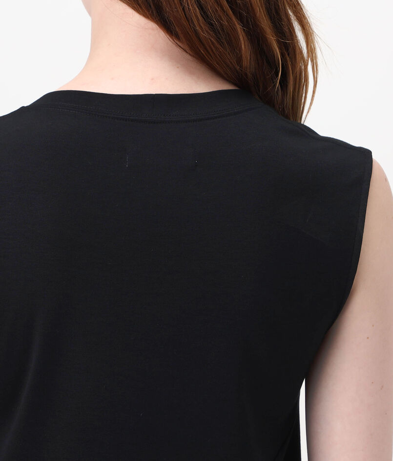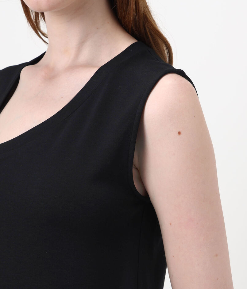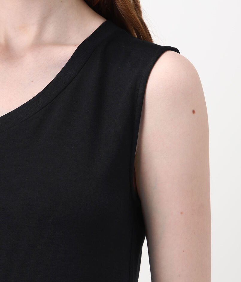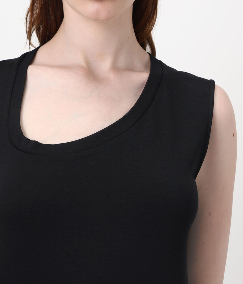 ネックはブランドらしさを意識した、襟ぐり中心がずれているようなディテールが特徴です。