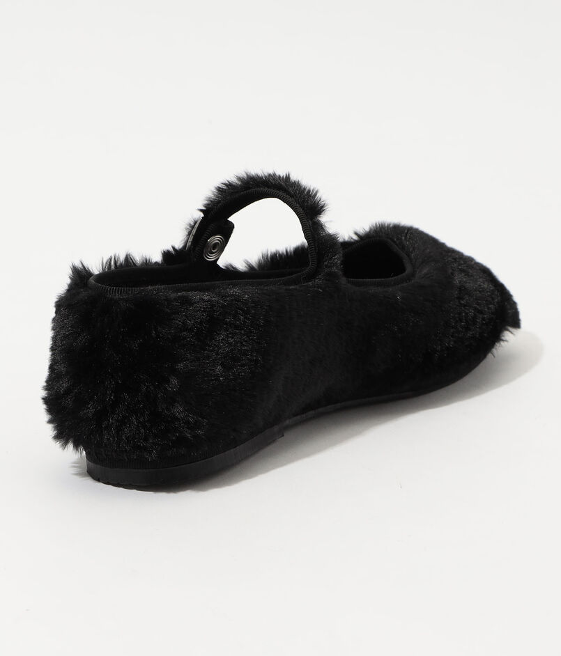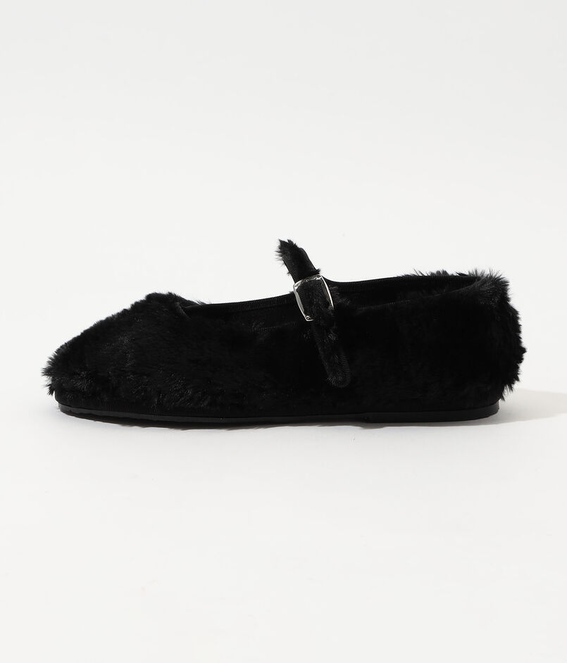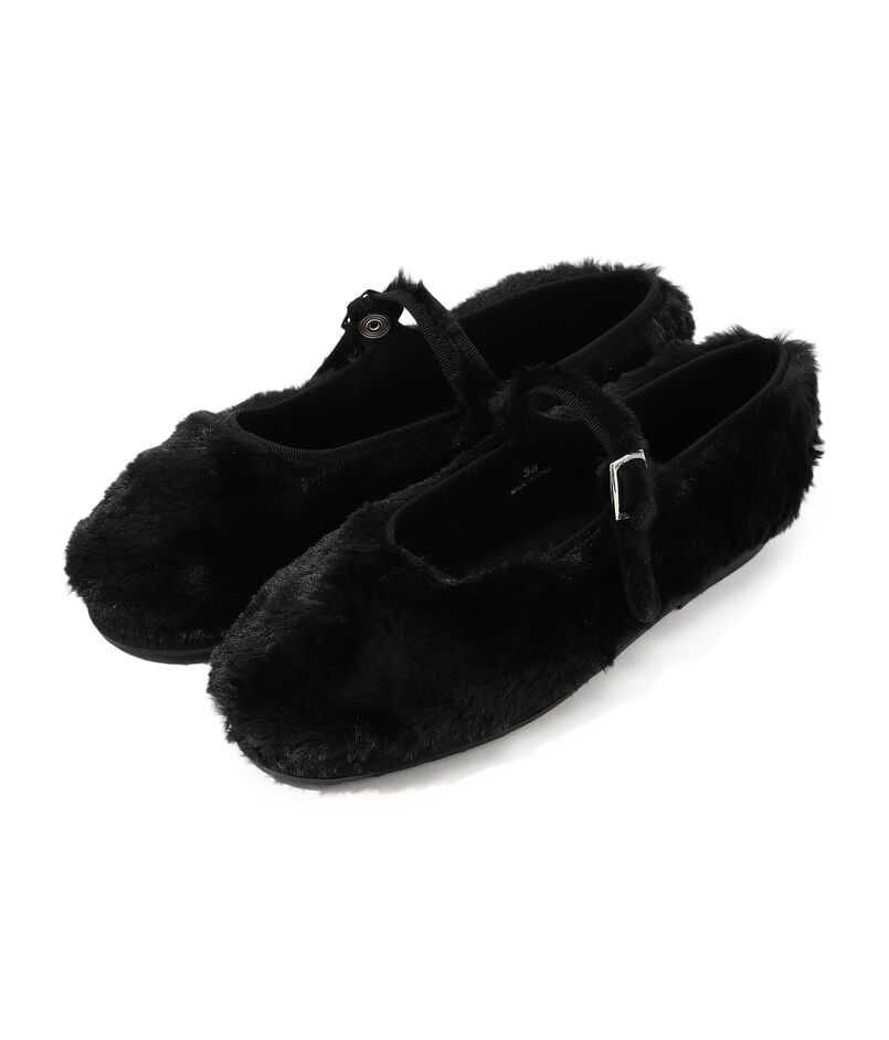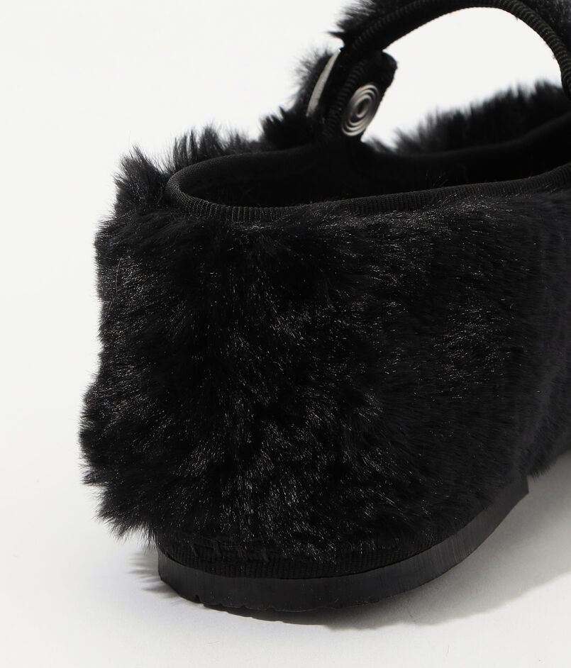 ふんわりとした毛足の長いファーが目を惹くメリージェーン。