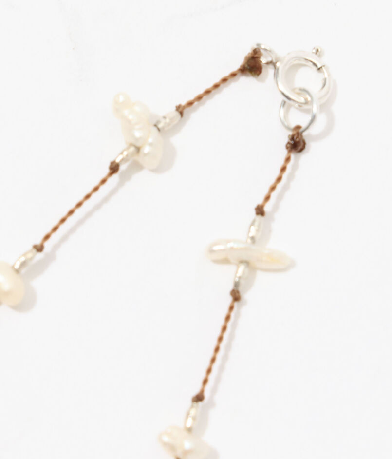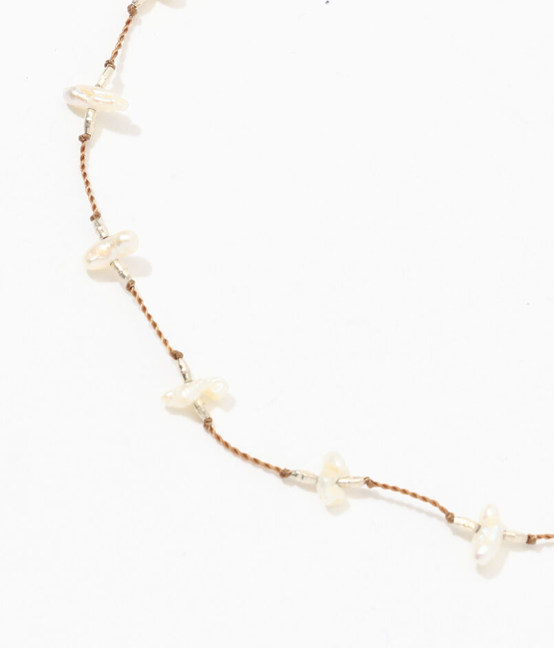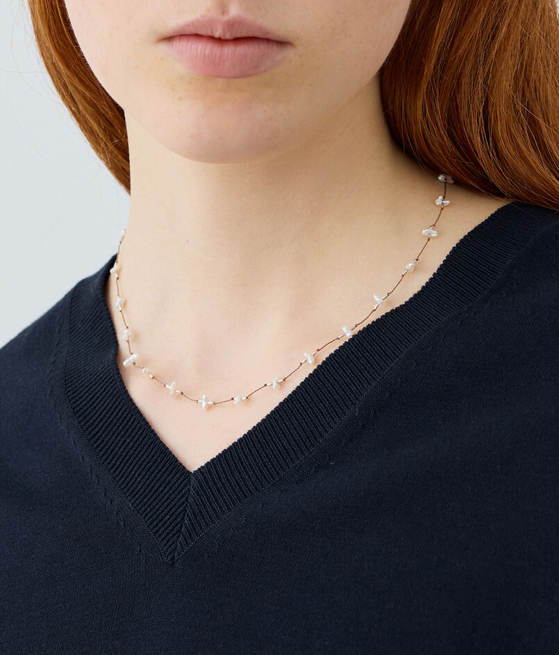 小さな白いケシパールが連なったコードネックレス。