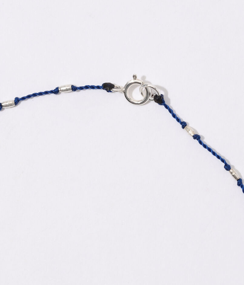 モチーフ部分はマザーオブパール製で、ナイロンコードには小さなシルバーのライスビーズがさりげなく輝きます。