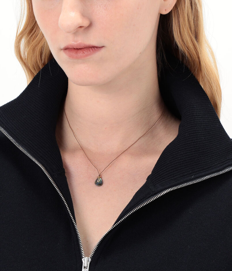 小さなアワビの貝殻をレインドロップ型のモチーフにしたネックレス。