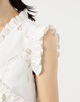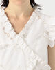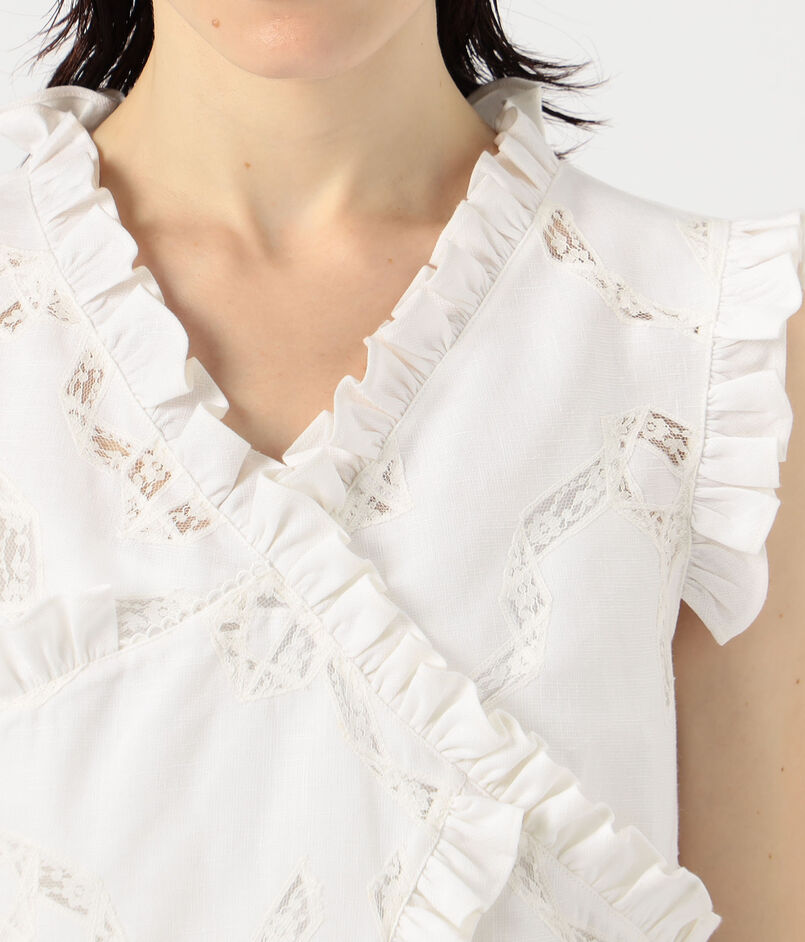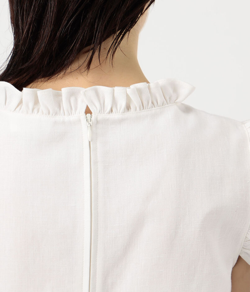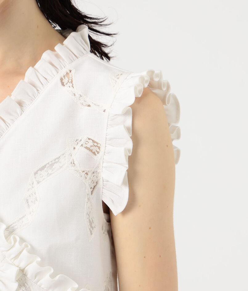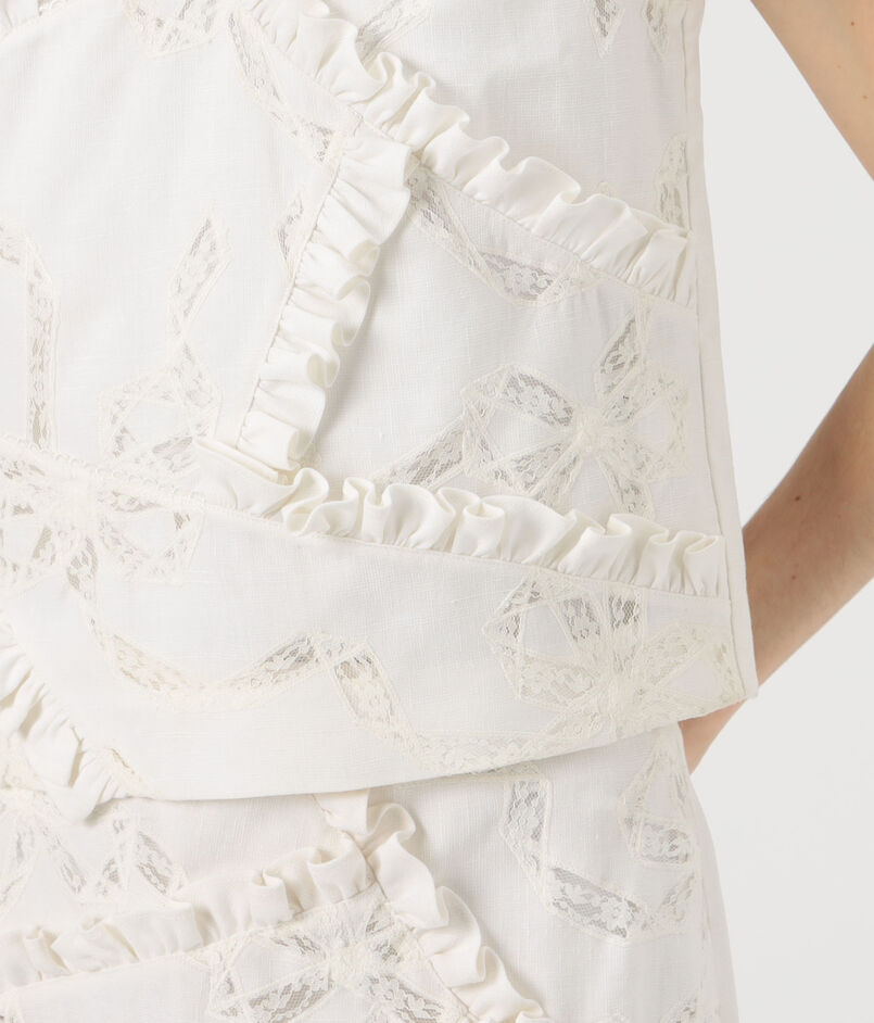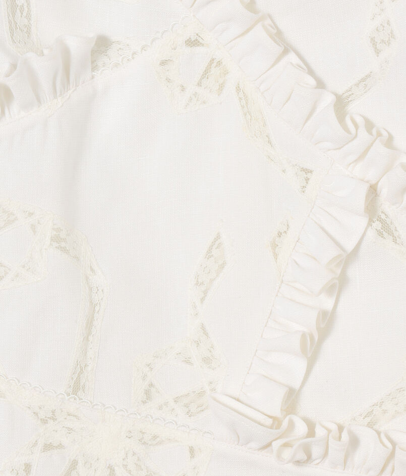 フリルや蝶結びなどの女性らしいディテールとリラックスしたアティチュードを融合させ、ひねりの効いたフェミニンなスタイルを打ち出しています。