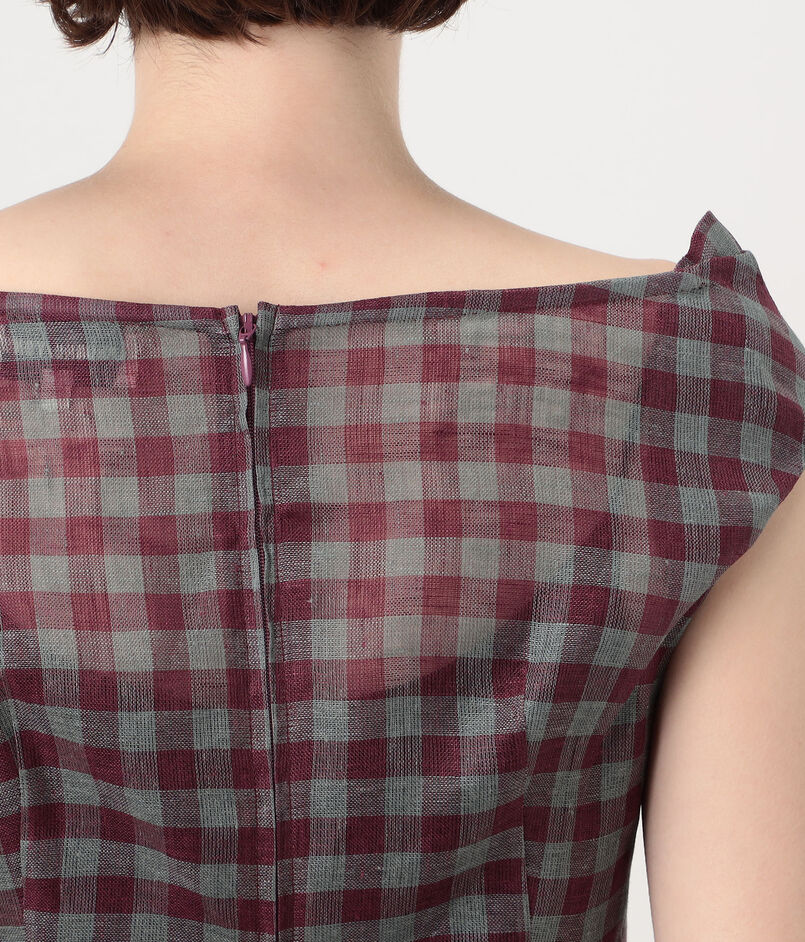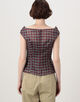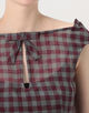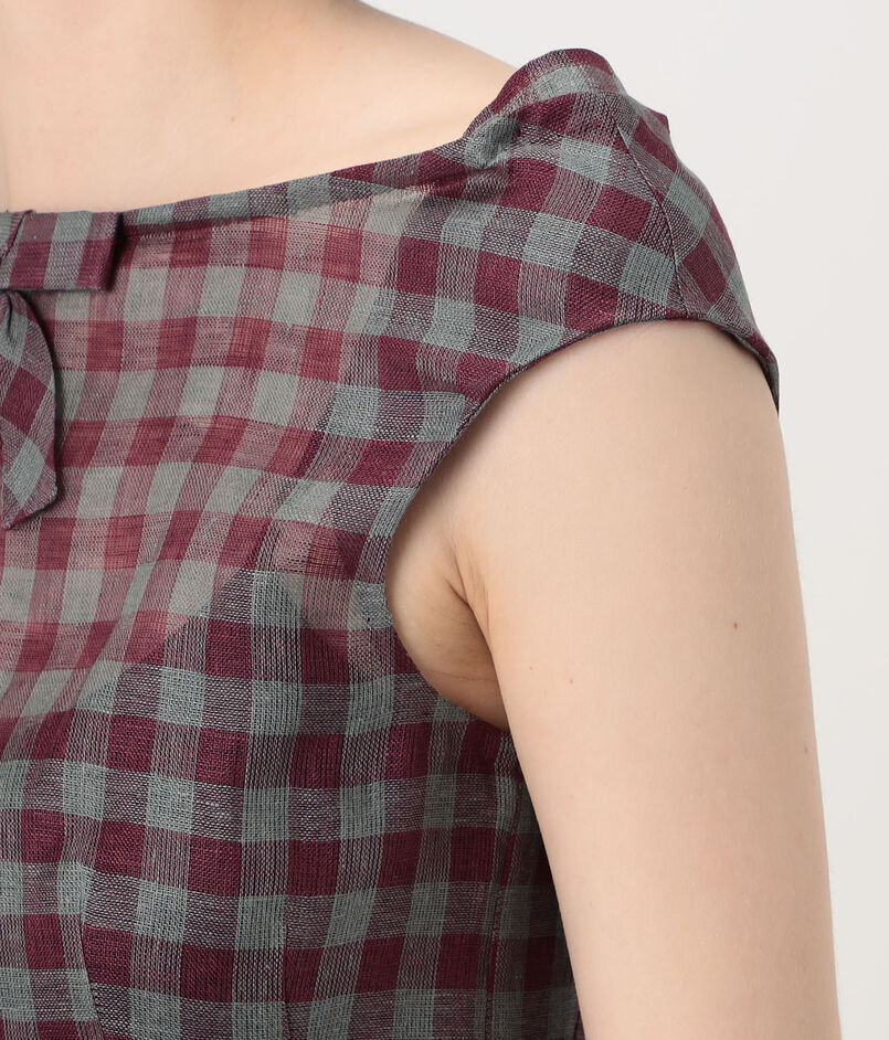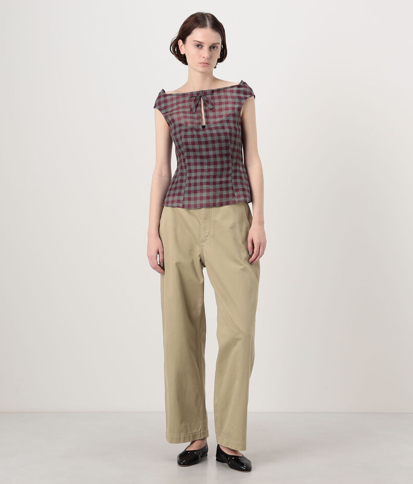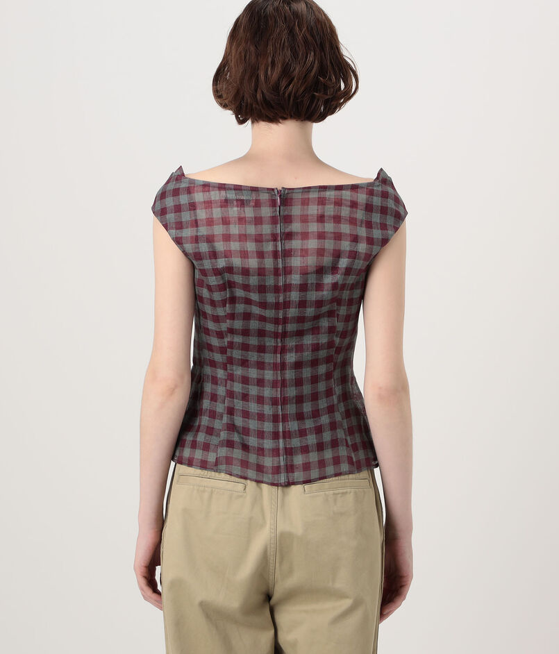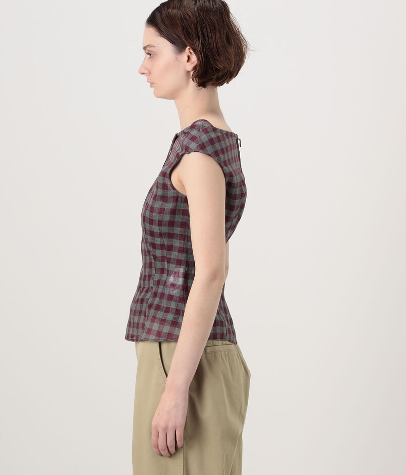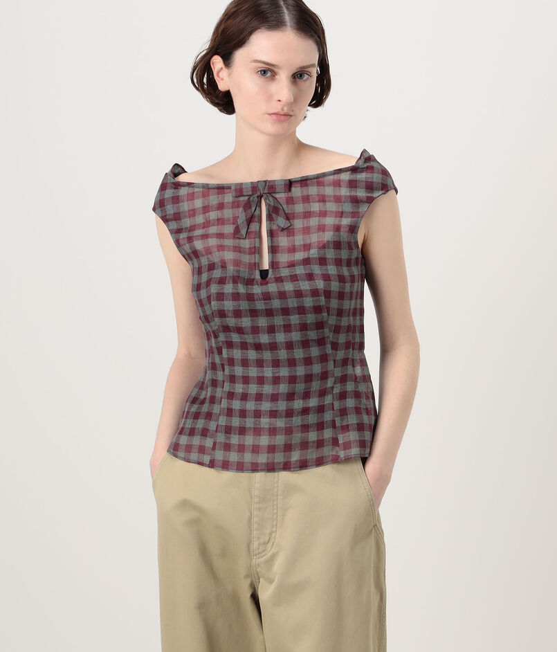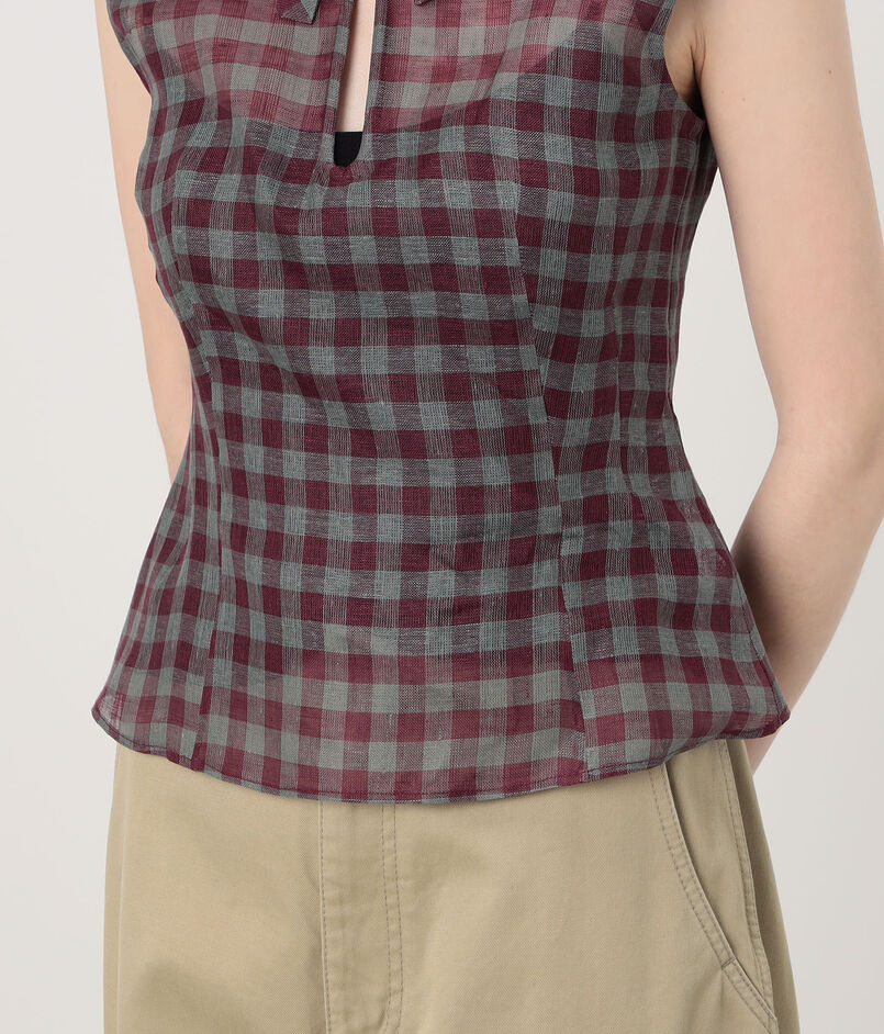 SHUSHU/TONG Keyhole Crop Top リネン チェックブラウス