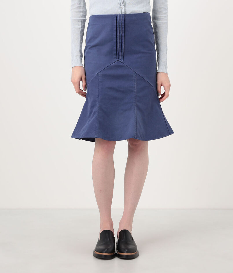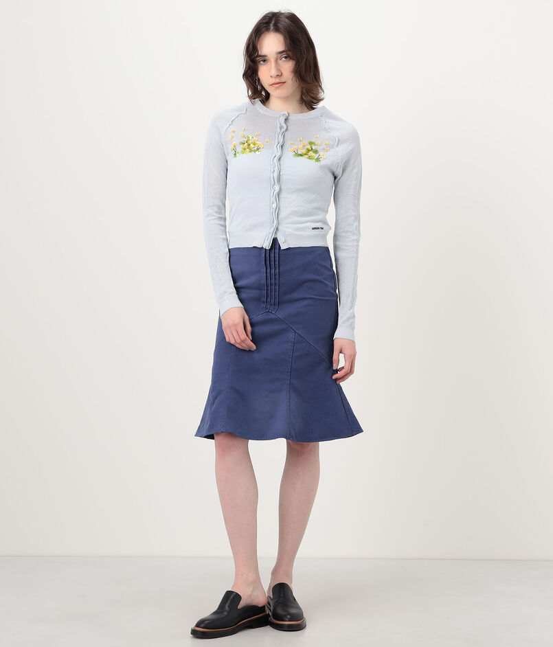 フェードのかかったヴィンテージライクな素材を、女性らしいマーメイドシルエットに仕上げた〈SHUSHU/TONG〉らしいスカート。