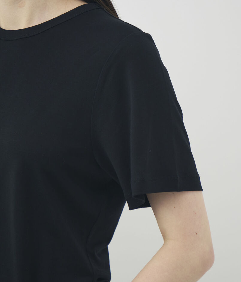 なめらかで肌当たりの良いファインジャージー素材を使用したクロップドTシャツ。
