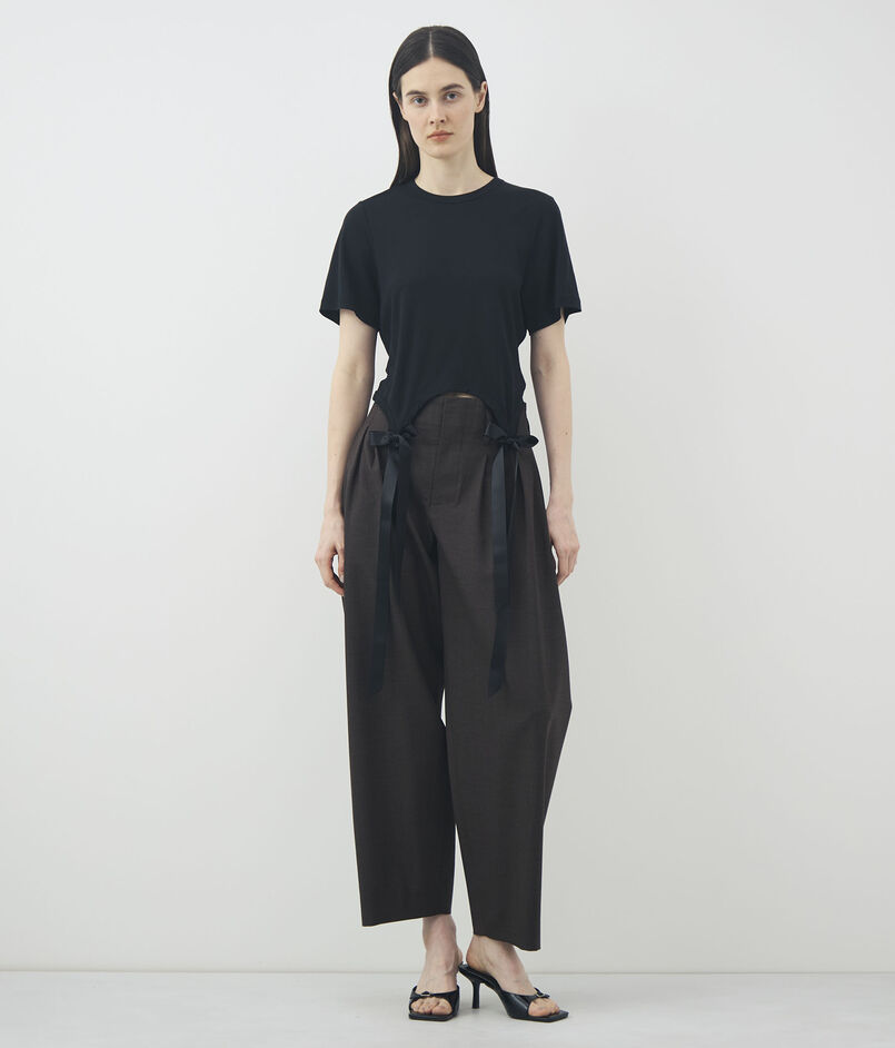モードなフォルムのTシャツにロマンティックなディテールで彩る〈Simone Rocha〉らしいデザインで、いつものスタイリングに自分らしい個性を添えてくれる一着。