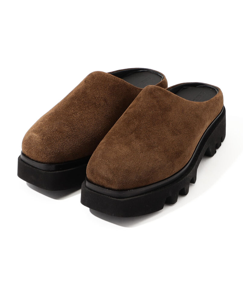ころんとしたボリュームのあるフォルムが印象的なミュール。