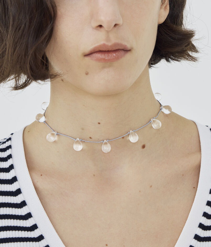 ころんとしたガラスのボールが点々と並ぶネックレス。