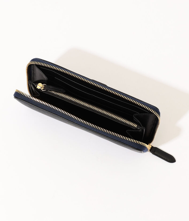 紙幣やカード、小銭、レシートをたっぷりと収納できる実用的なデザインです。