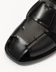 編み込まれたレザーストリップで作られたケージデザインが特徴です。