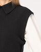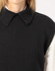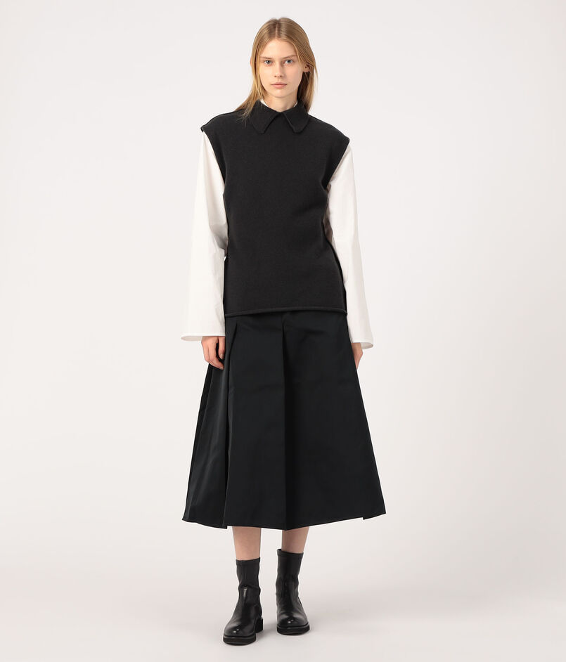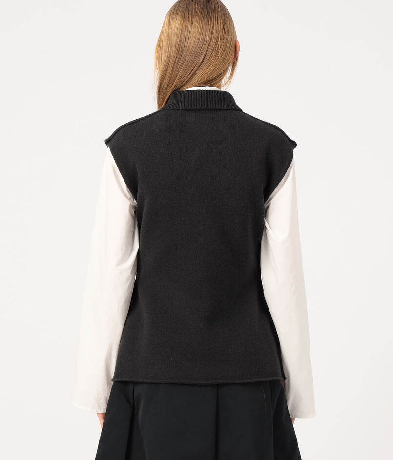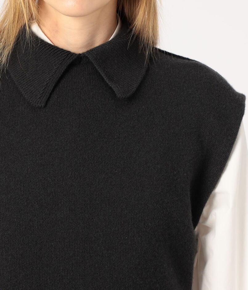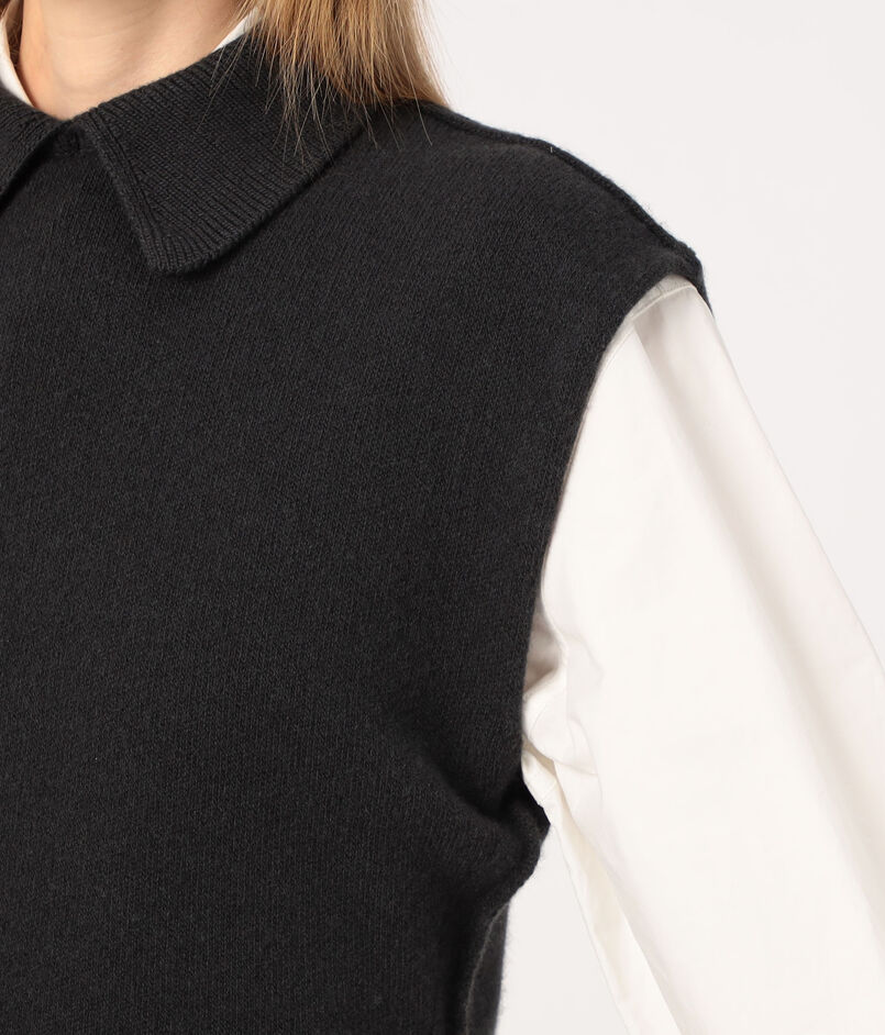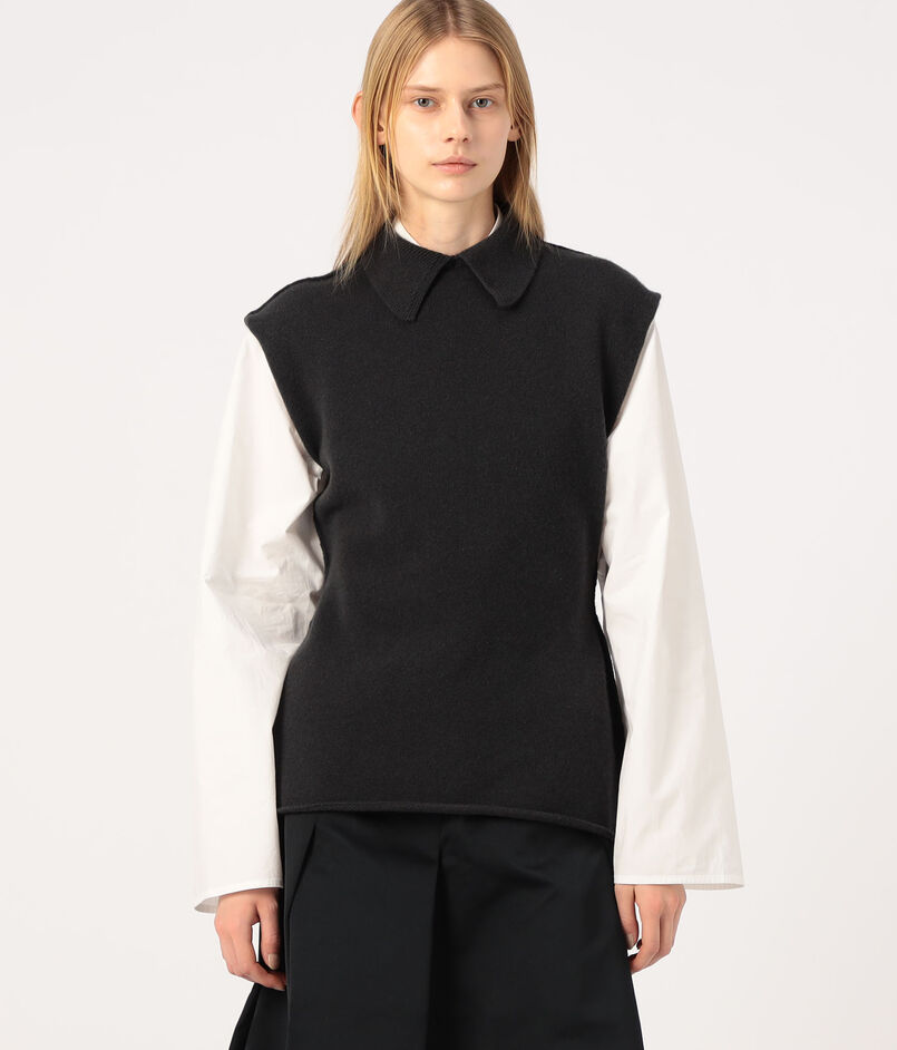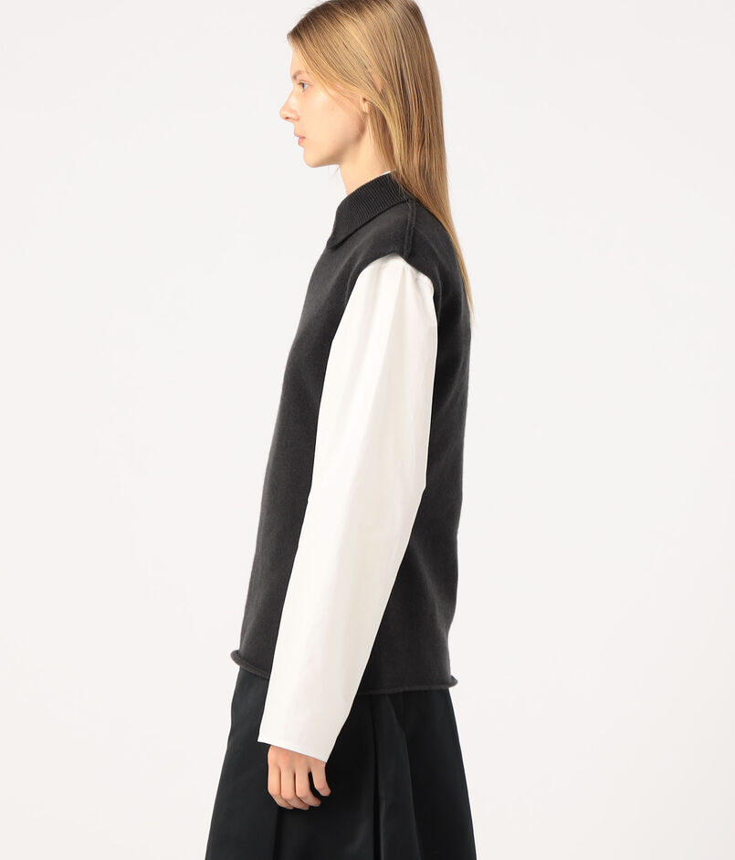 肩先までのフレンチスリーブで、一枚ではもちろんベストのようにレイヤードしても着用いただけます。