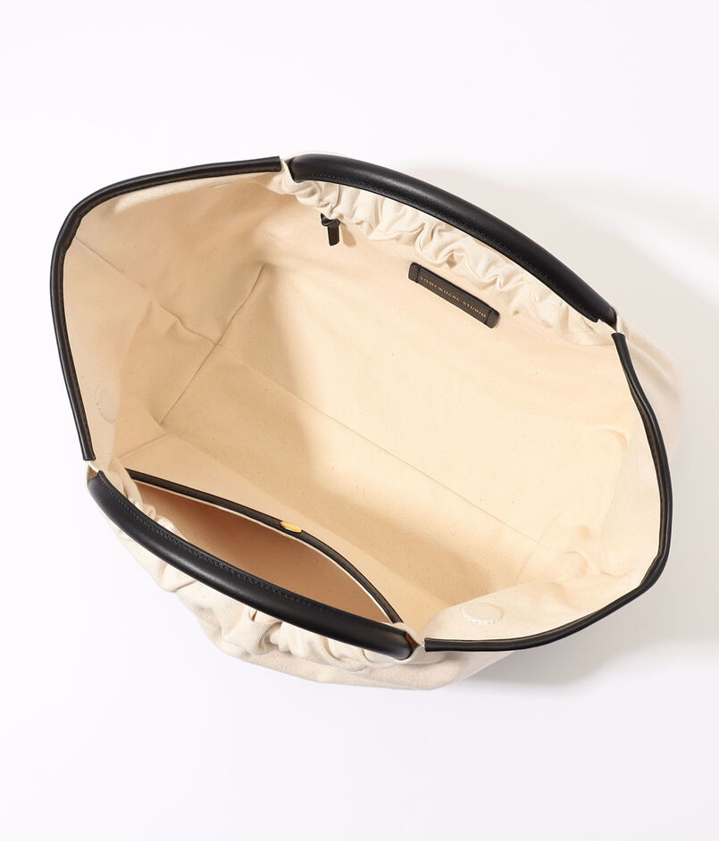 撥水加工を施したツイル帆布に、肉厚で上質なスムースレザーのコントラストが美しい、『NEST』シリーズのボートシェイプバッグ。