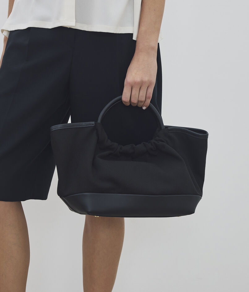 贅沢に寄せたギャザー使いが目を引く、柔らかな表情のトートバッグです。