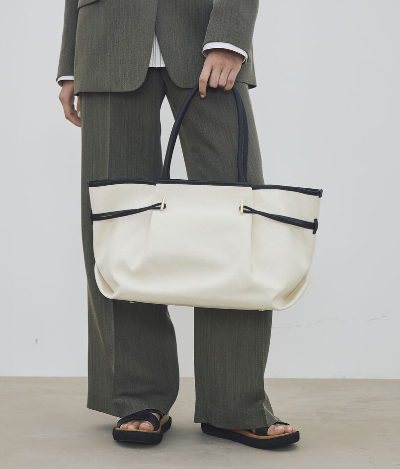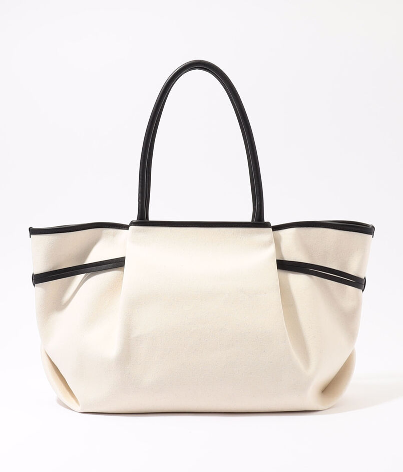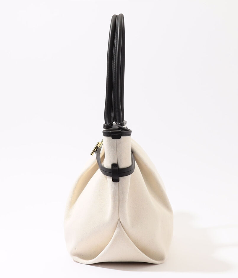 贅沢に寄せたギャザー使いが目を引く、柔らかな表情のトートバッグです。