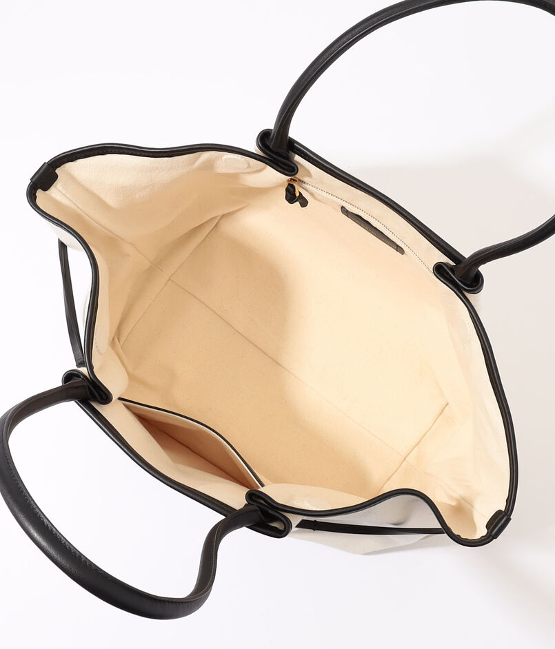 撥水加工を施したツイル帆布に、肉厚で上質なスムースレザーのコントラストが美しい、『NEST』シリーズのボートシェイプバッグ。