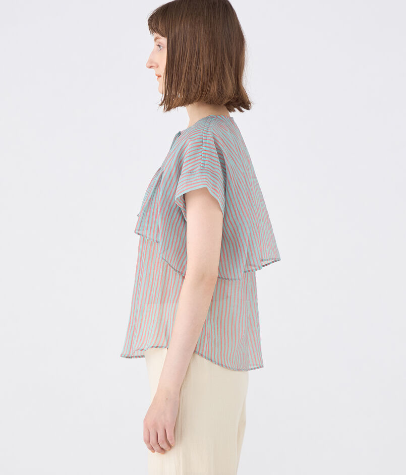 クロップド丈のシャツをレイヤードしたようなヨークデザインが特徴的なブラウス。