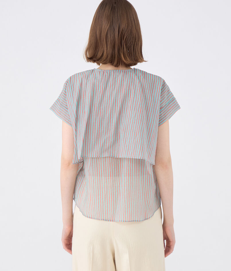 コットンポリエステルプリント レイヤードブラウス