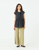 アシンメトリーなフロントのフリルディテールでフェミニンな雰囲気をプラスしています。