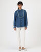 インドにてデニムにライン刺繍を施した素材を使用したシリーズ。