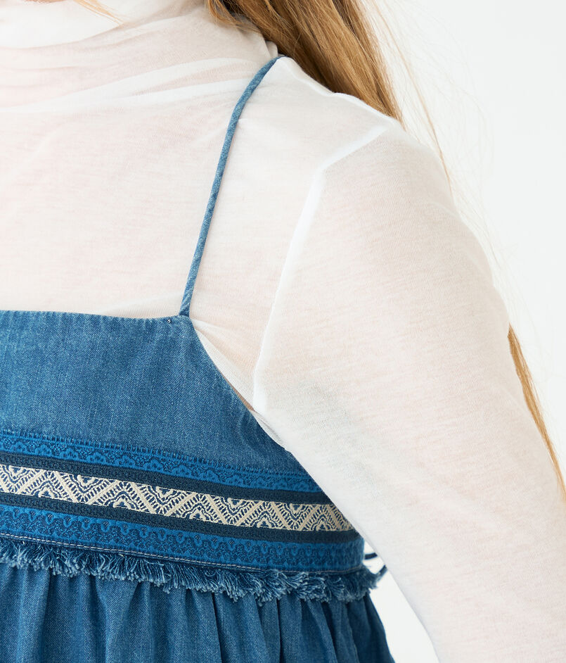 Tシャツやタンクトップとレイヤードしたり、秋冬にはタートルネックなどをインするのもおすすめ。