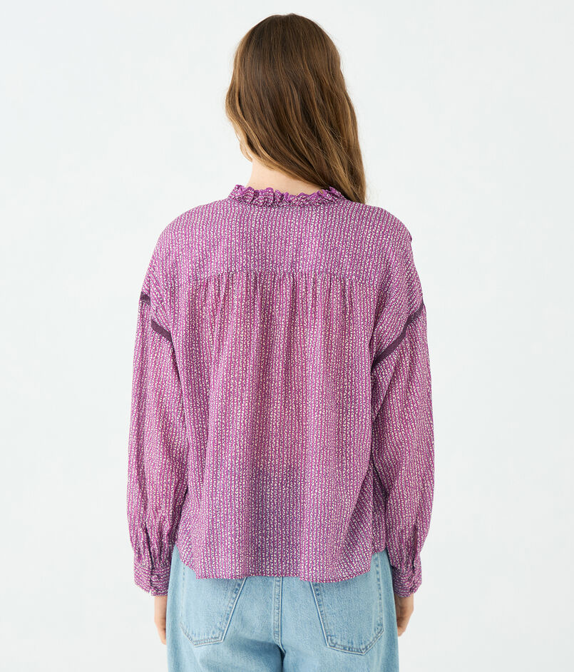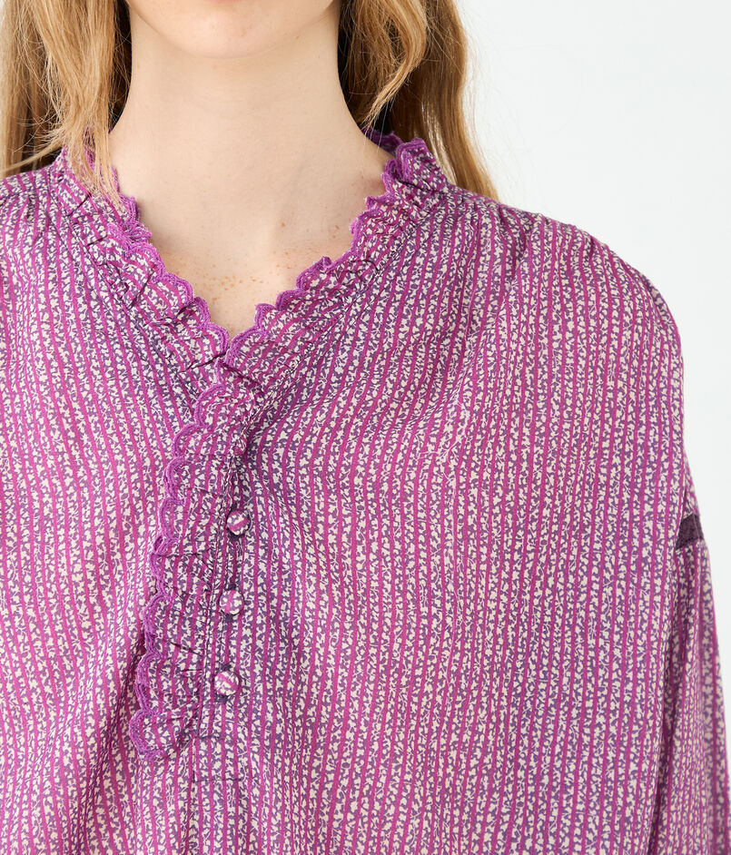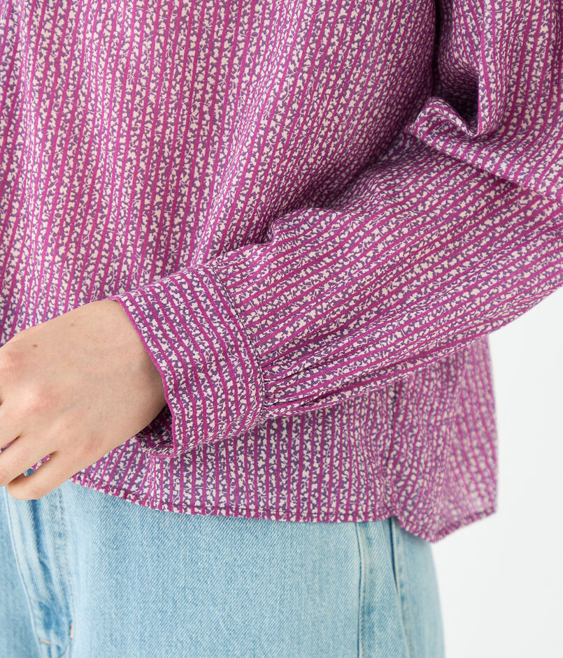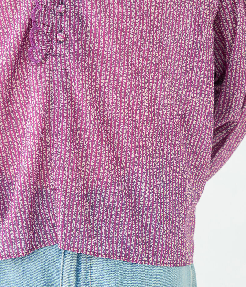 ツタ柄とストライプ柄を組み合わせてプリントしたブラウスシリーズ。