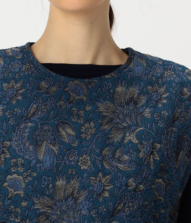 柄を織りで表現した立体的な凹凸が光沢と陰影を生み、プリントでは出せない重厚感を演出しています。