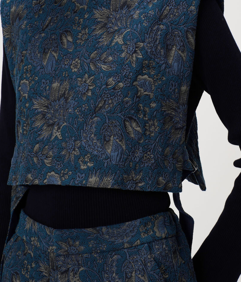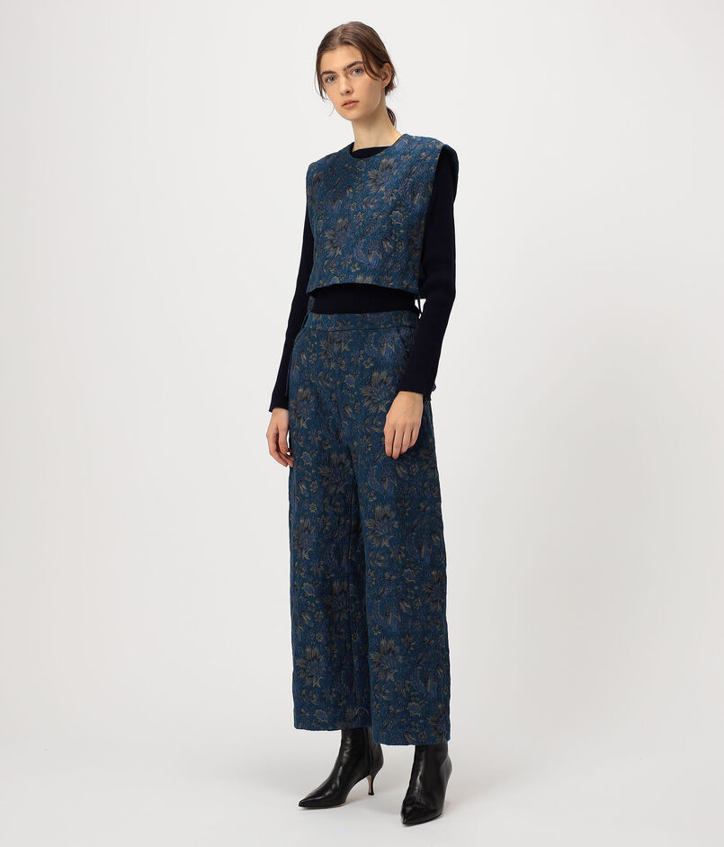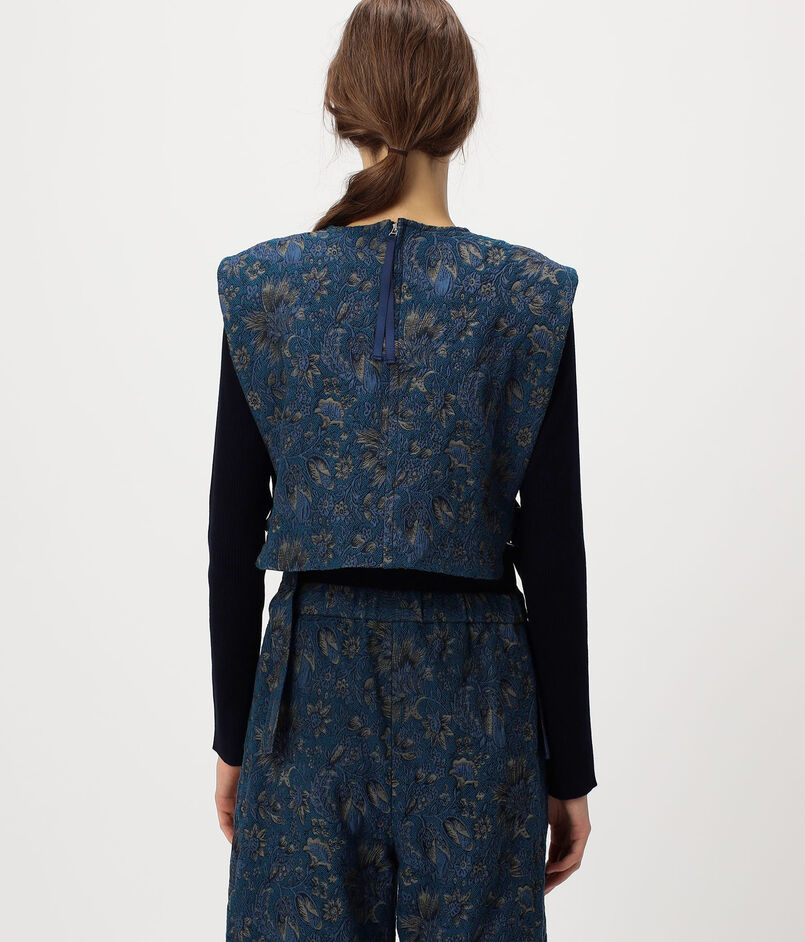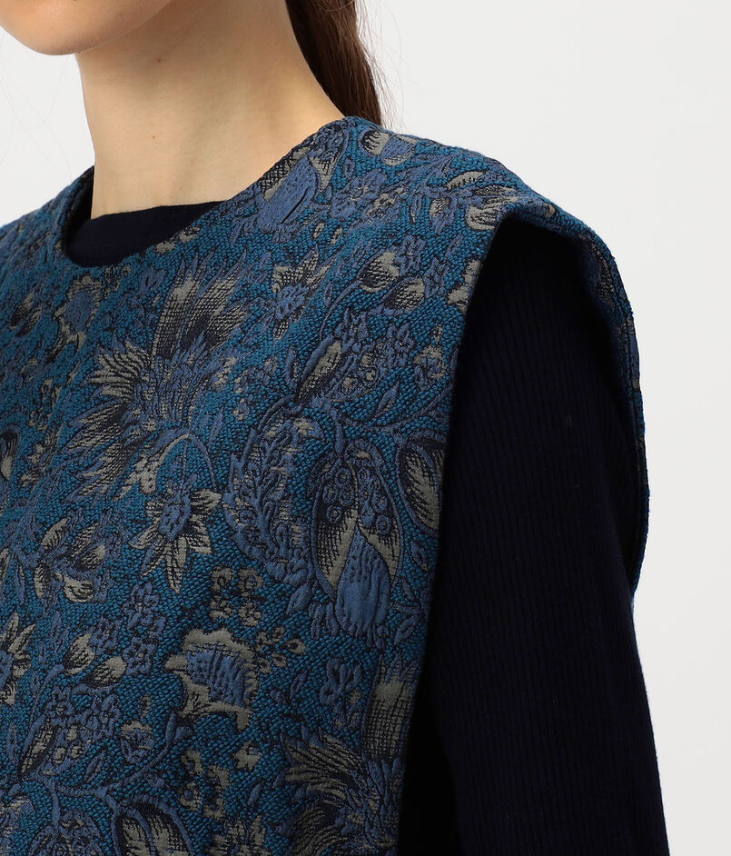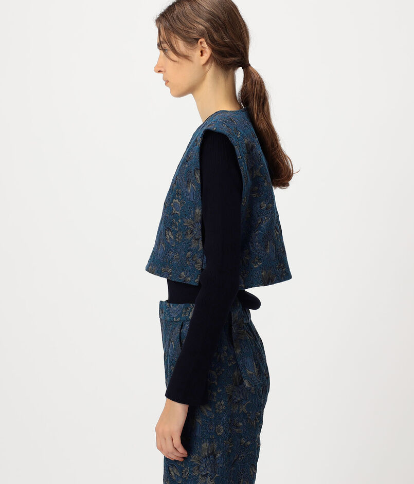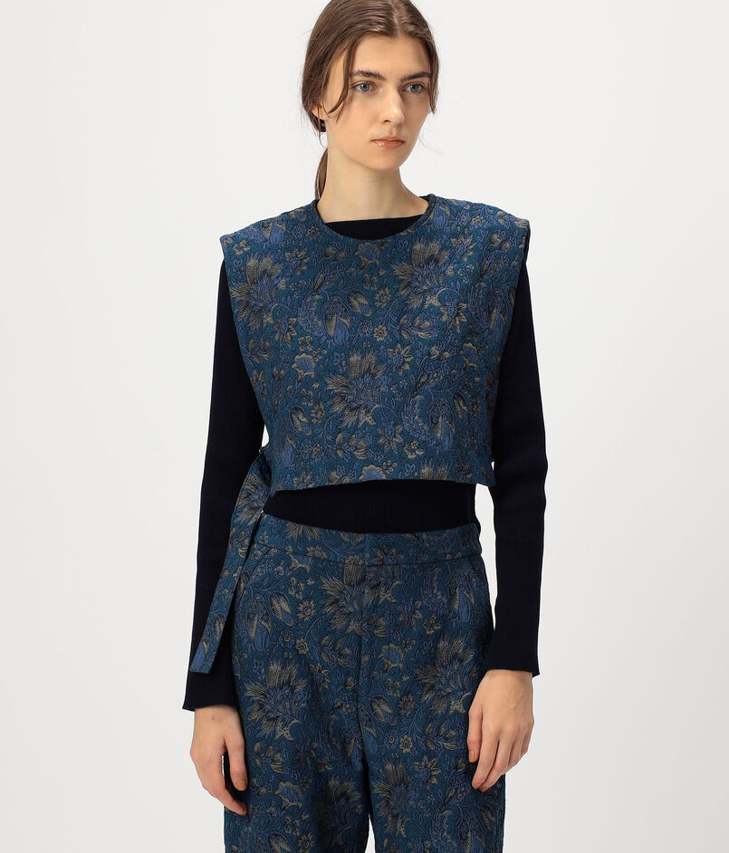 サイドのアジャストベルトでインナーの厚みに合わせてシルエットを微調整できるため、薄手のカットソーからボリュームのあるブラウスまで、さまざまなトップスとのレイヤードをお楽しみいただけるプラスワンアイテム。