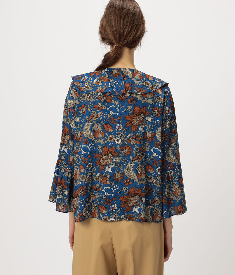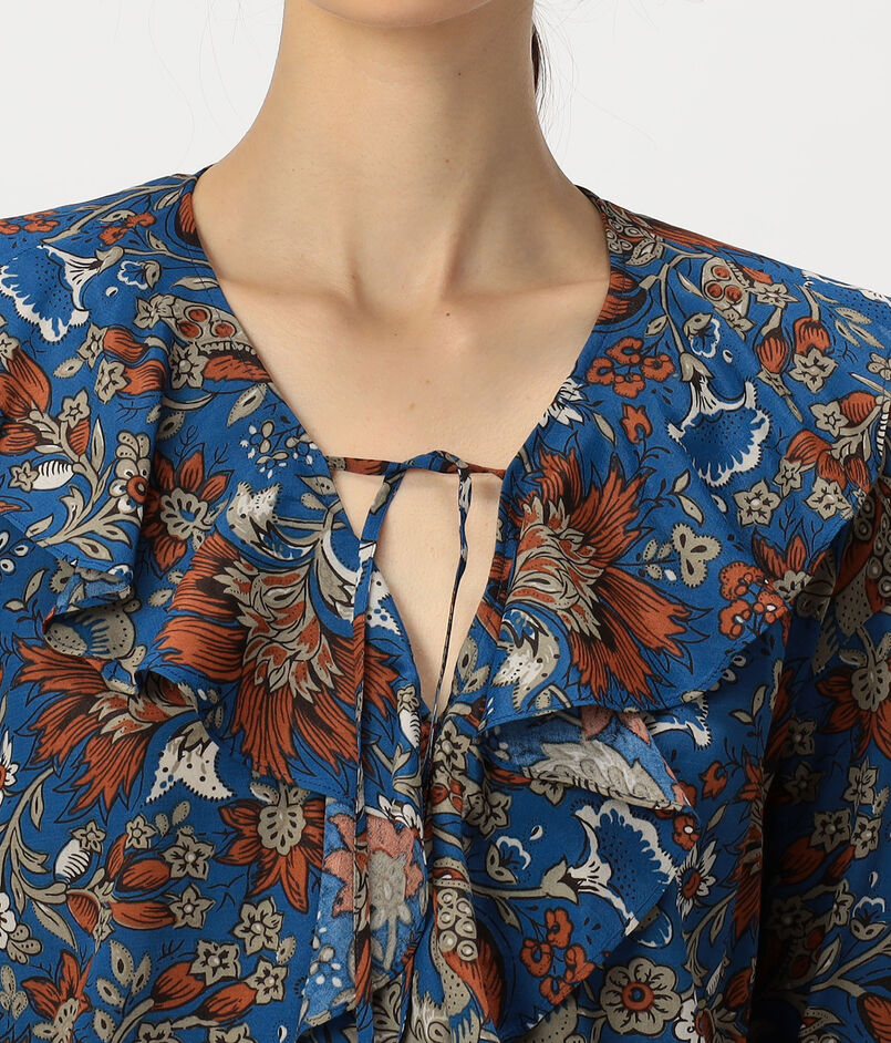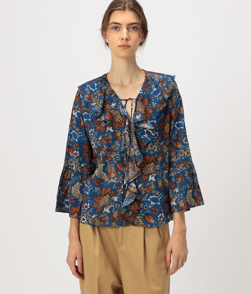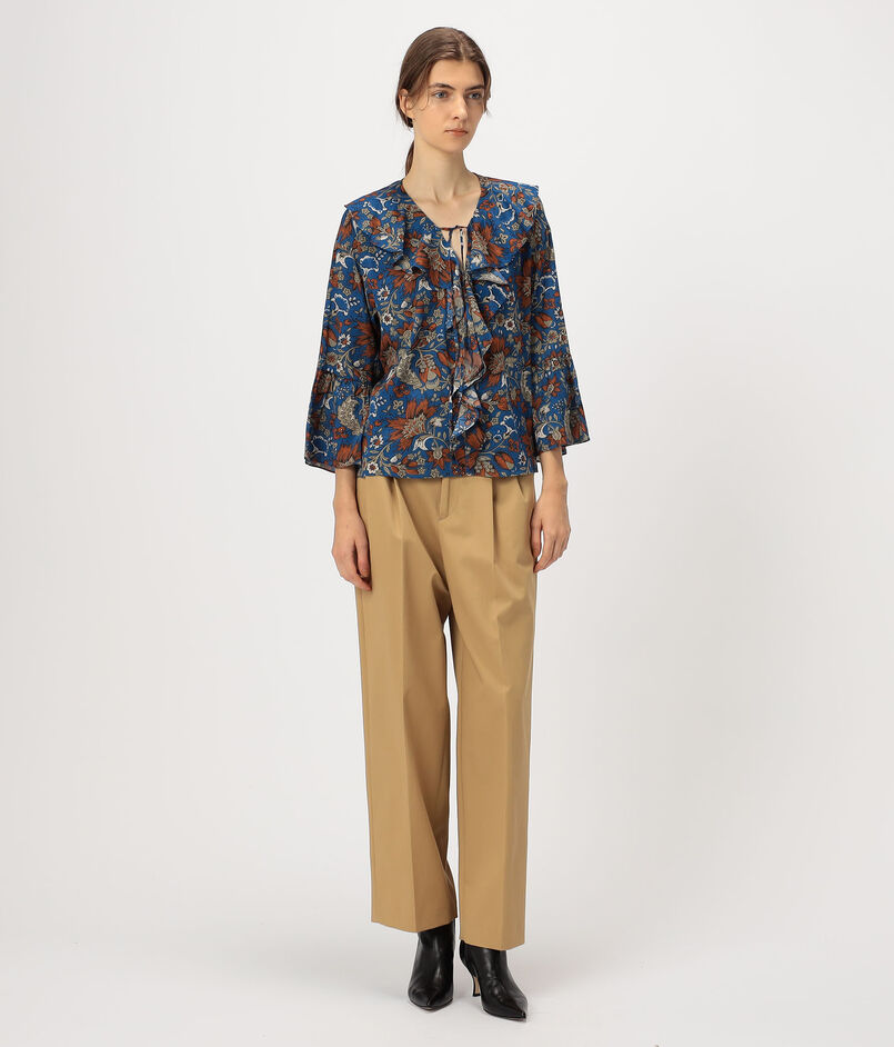 フリルブラウスは襟まわりと袖に大胆なフリルを施したフェミニンかつロマンティックな一枚。