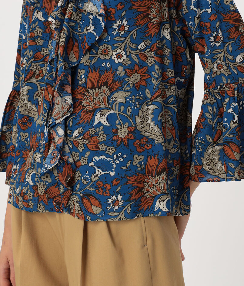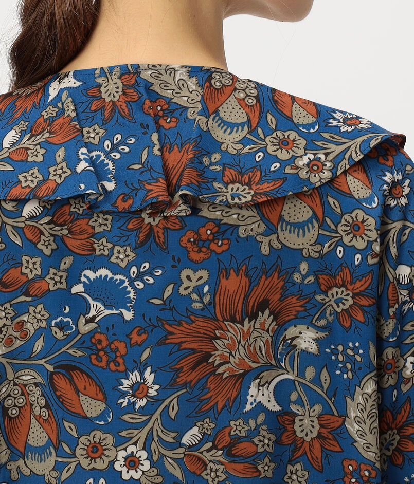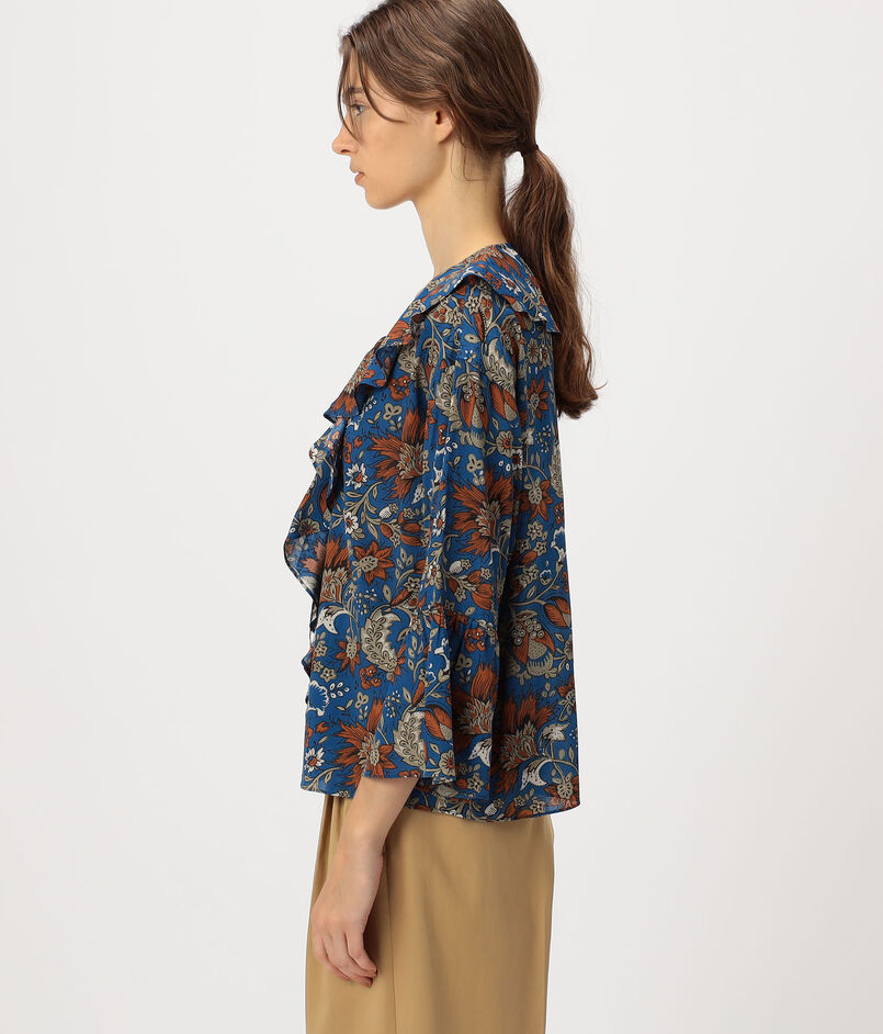フリルブラウスは襟まわりと袖に大胆なフリルを施したフェミニンかつロマンティックな一枚。