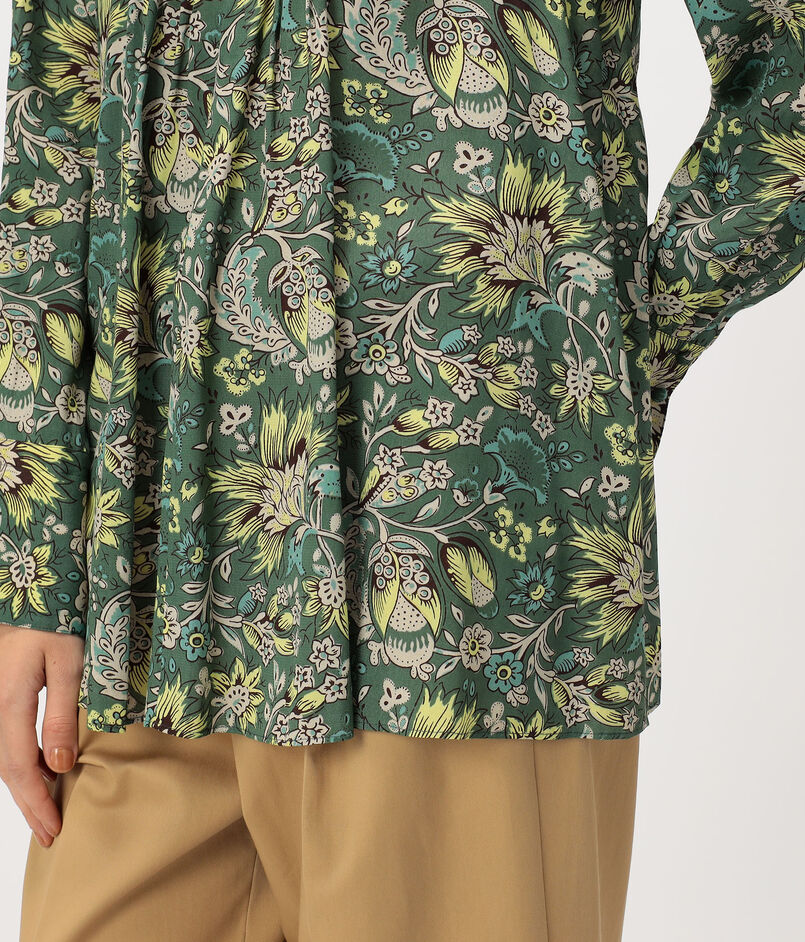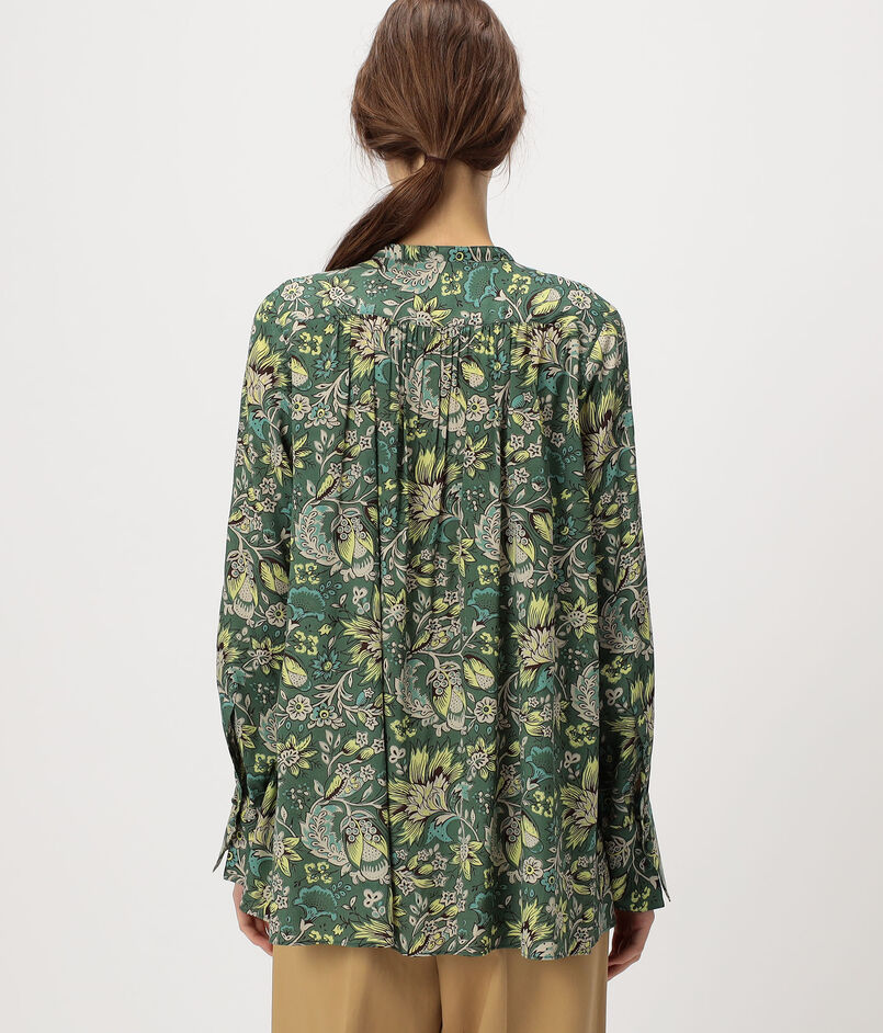 ヨーク部分にたっぷりとギャザーを寄せたバックディテールが、後ろ姿にふんわりと優雅なボリューム感をプラスしています。