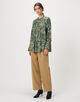 フロントに配したくるみボタンもポイントで、気分や着こなしに合わせて襟ぐりのボタンを外しすっきりとしたVあきで着用するのもおすすめ。