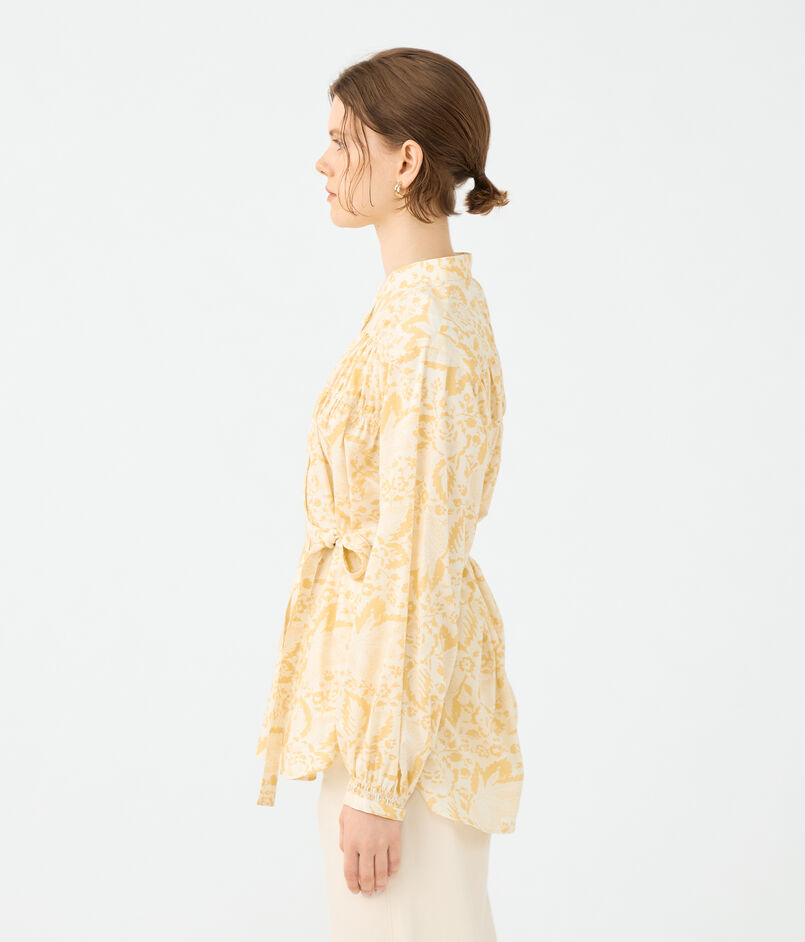 コットンローンプリント シャーリングチュニックブラウス