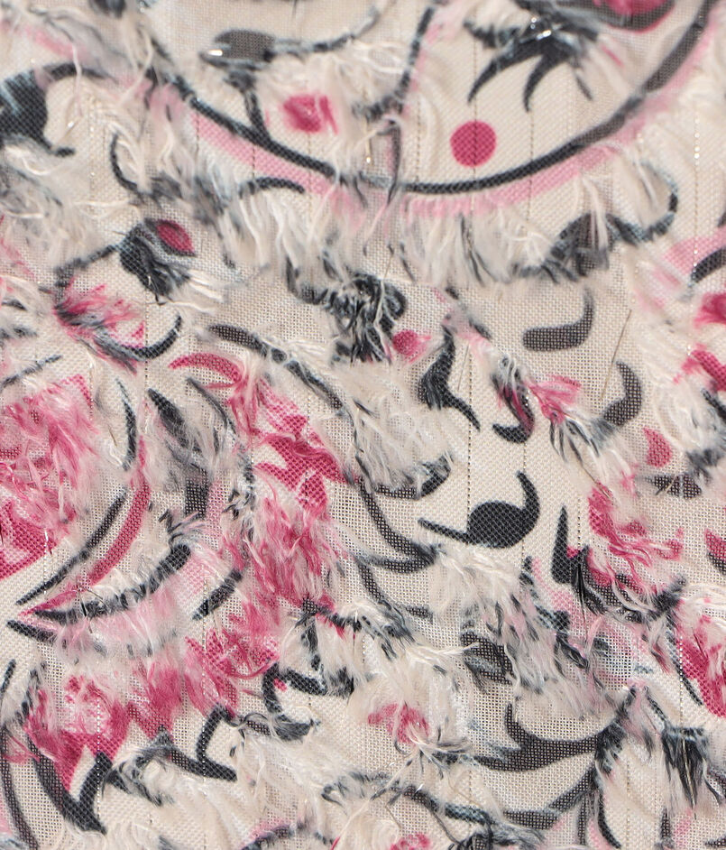 ラメ入りのカットジャカードに、孔雀の羽をモチーフにしたエキゾチックな表情の〈SOULEIADO〉オリジナル柄をプリントしたシリーズ。