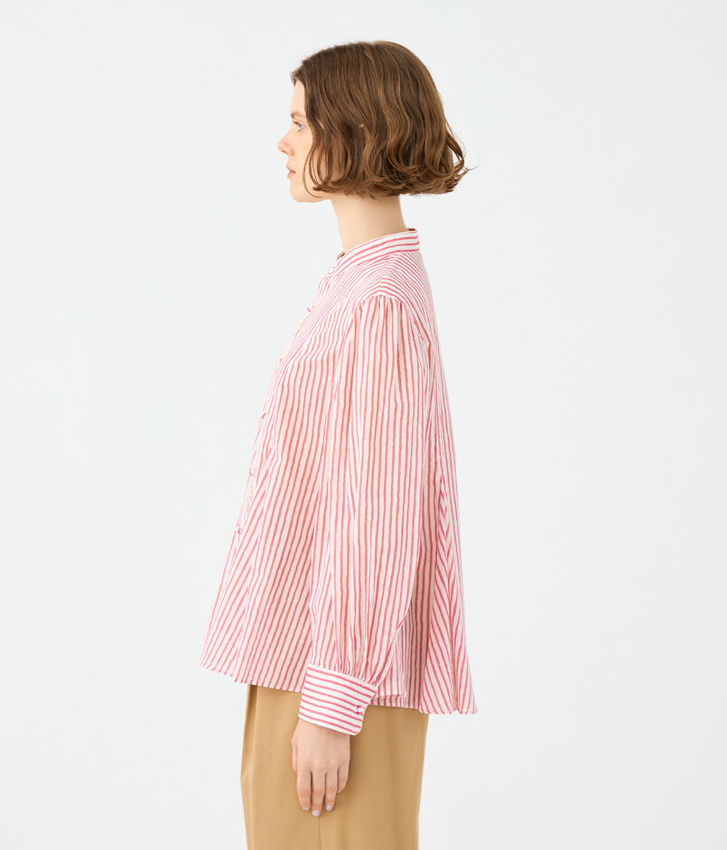 コットンボイル素材に手書き風のストライプ柄をプリントしたブラウスシリーズ。
