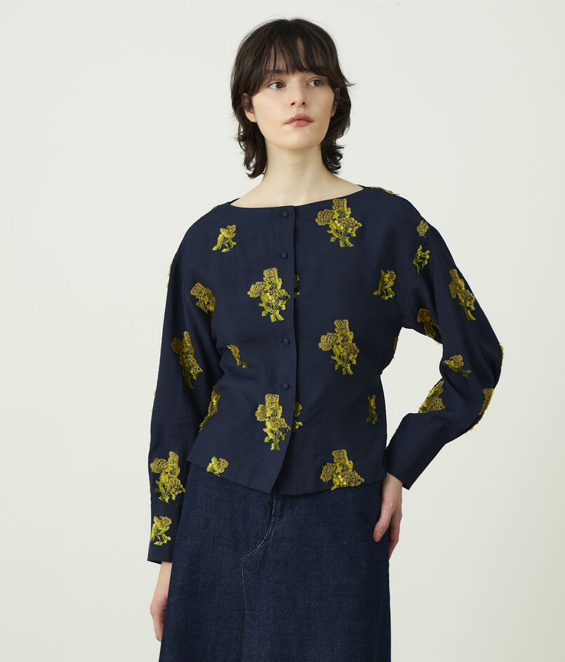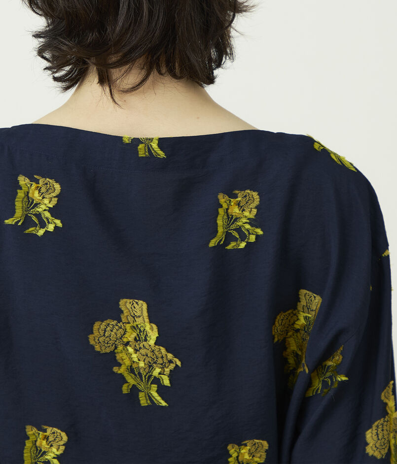 カットジャカード ボートネックブラウス