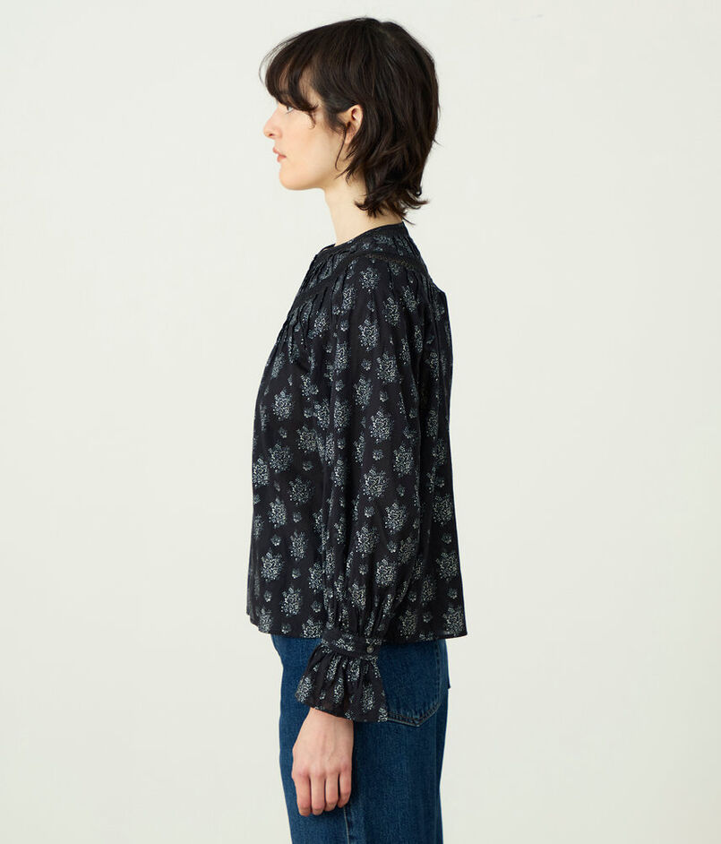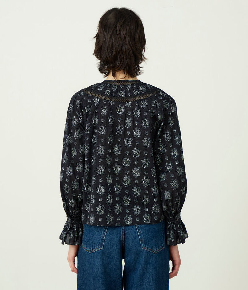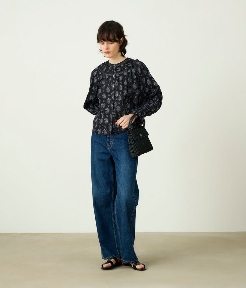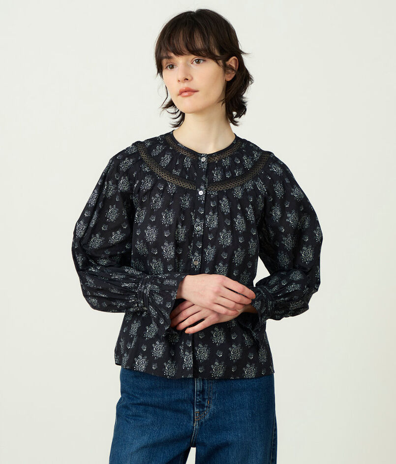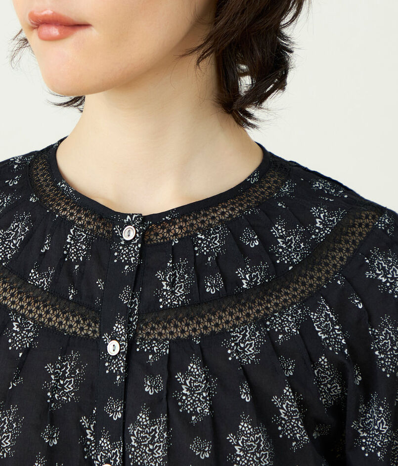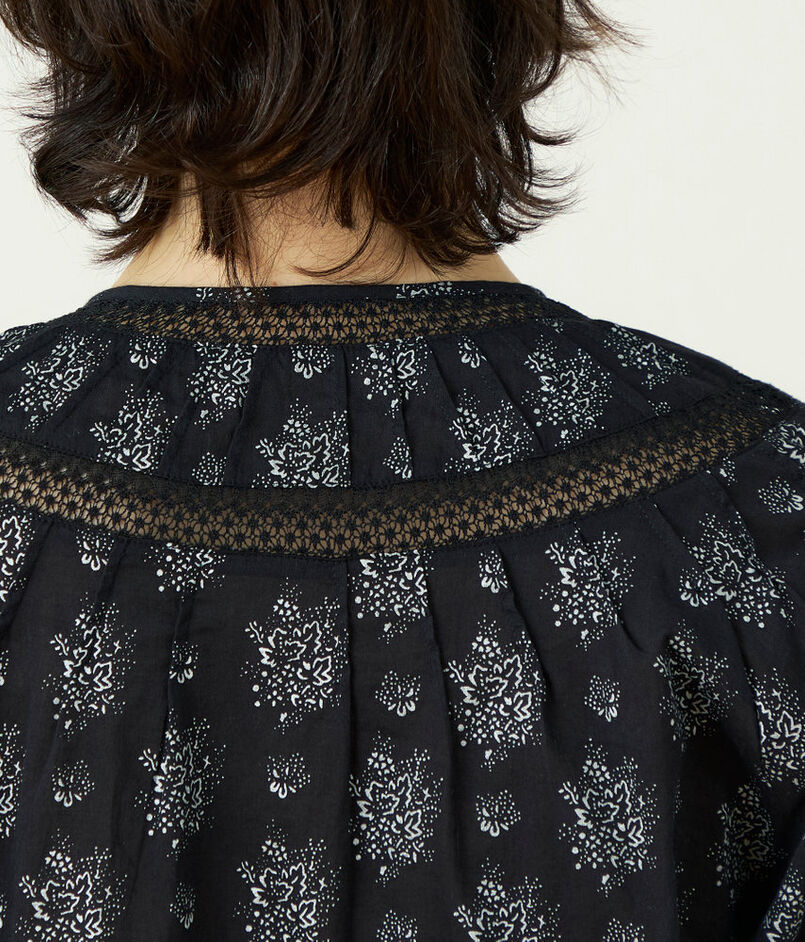襟ぐりに放射状に一本一本手作業で丁寧にピンタックを施すことで、凝ったディテールに仕上げたブラウス。