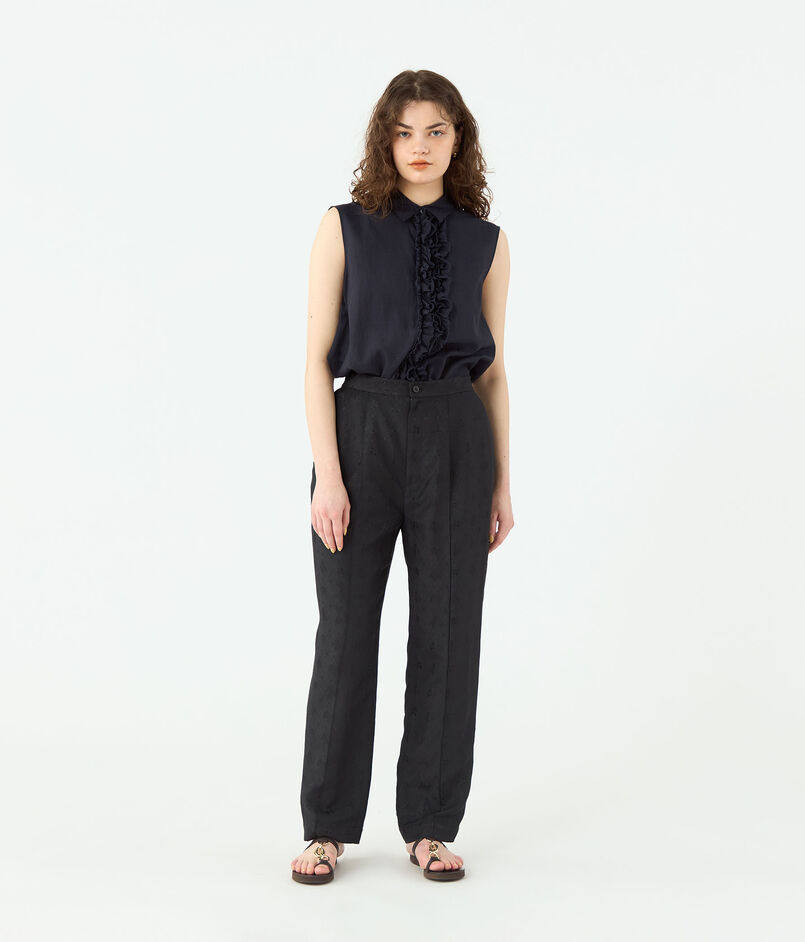 クリースラインに入れたつまみステッチで脚のラインをより美しく見せてくれます。