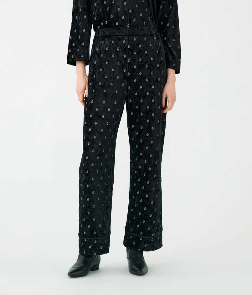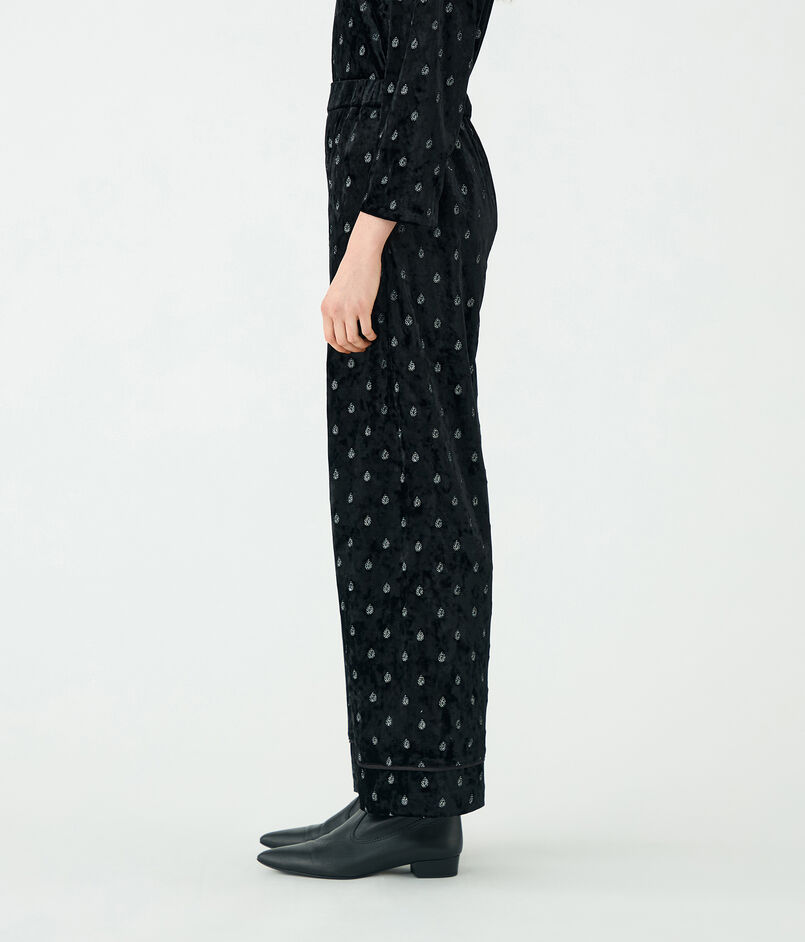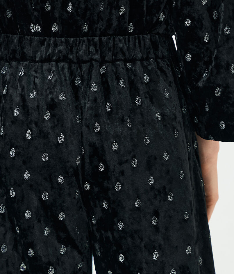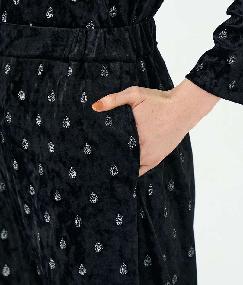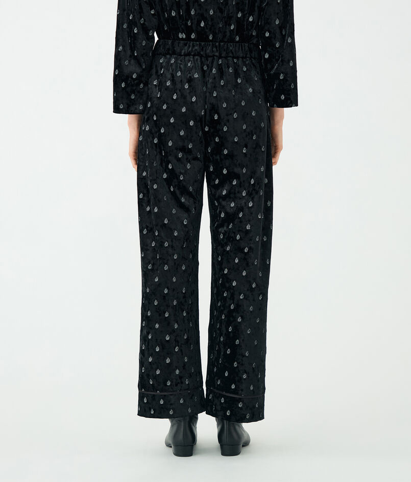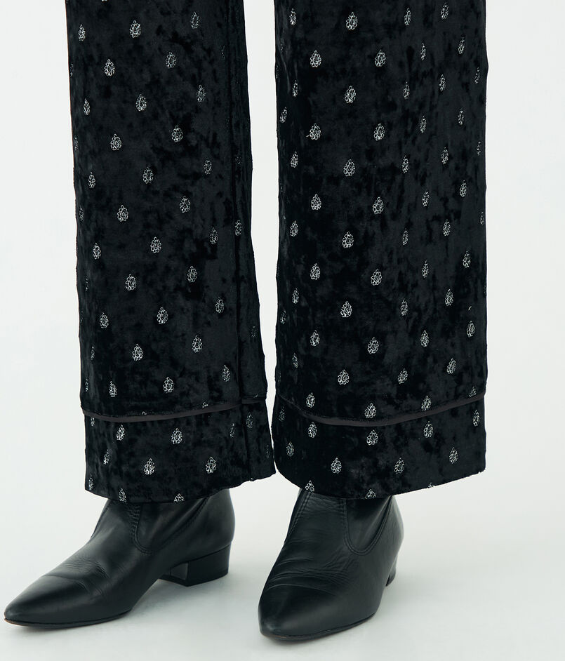 ポリエステルのベロア素材に〈SOULEIADO〉オリジナルの小紋柄刺繍を施したシリーズ。