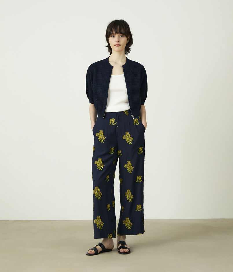 カットジャカード タックストレートパンツ