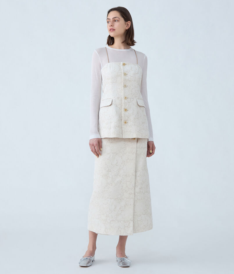 お手持ちのトップスとはもちろん、同素材のビスチェ(商品番号:75-01-51-01001)とのセットアップスタイルもおすすめ。