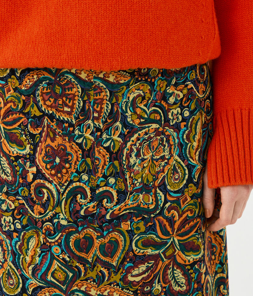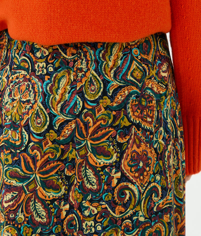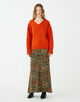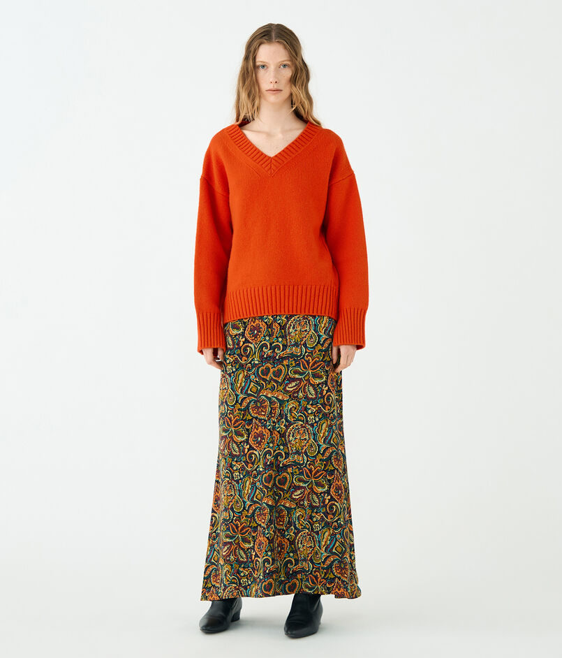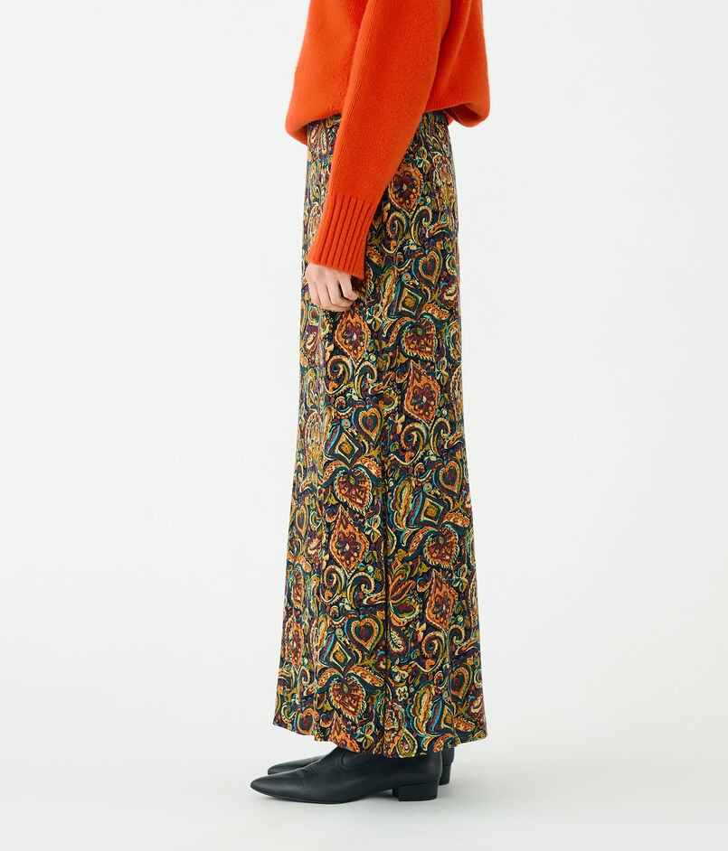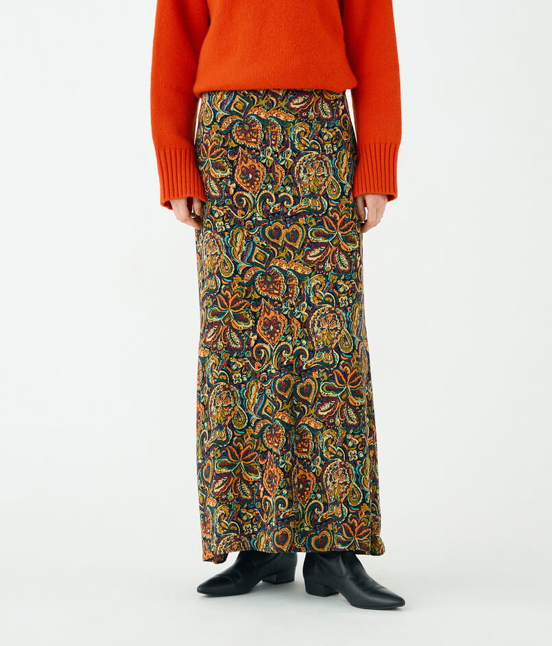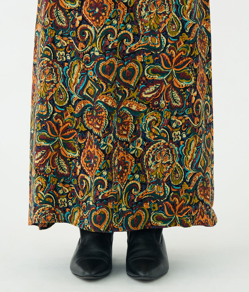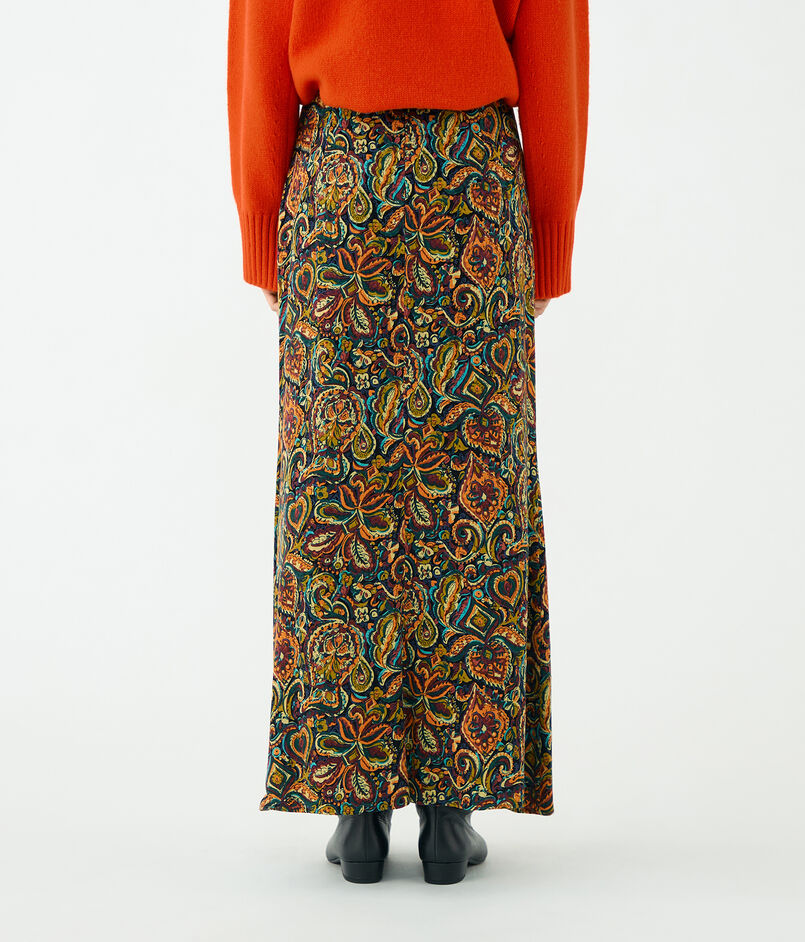 スカートは緩やかなフレアシルエットと足首まで届く長めの着丈でリラックス感のある大人のバランスに。
