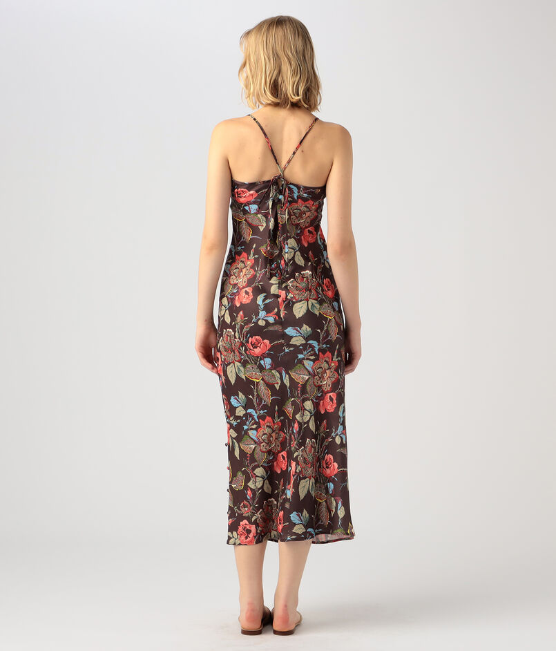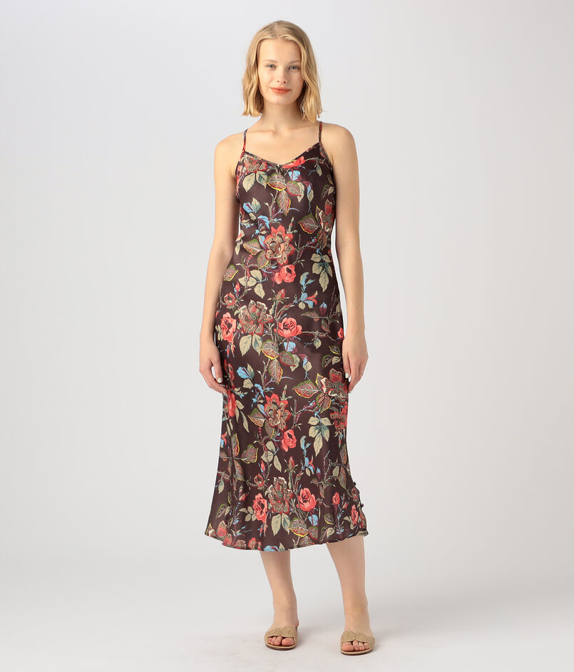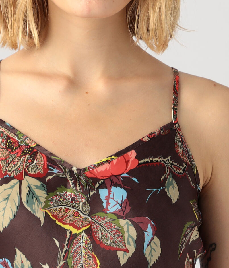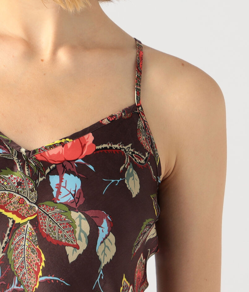 さらりとしたポリエステル素材のキャミソールワンピース。