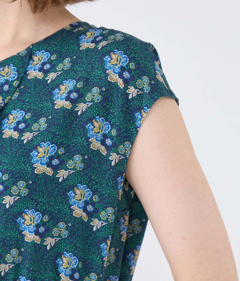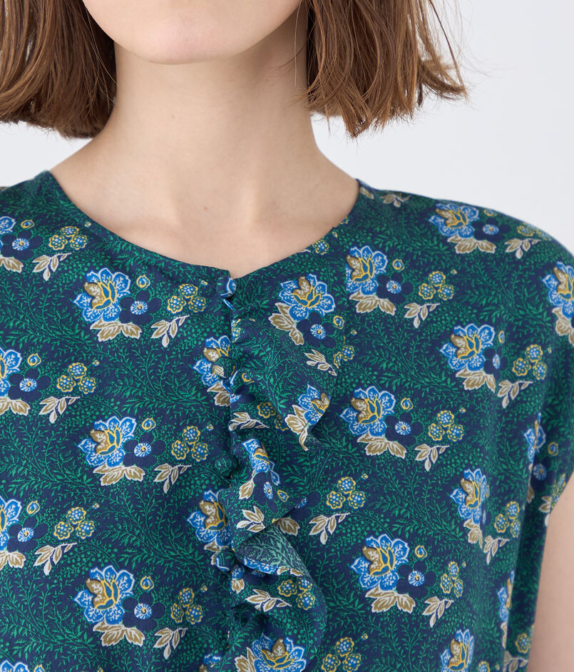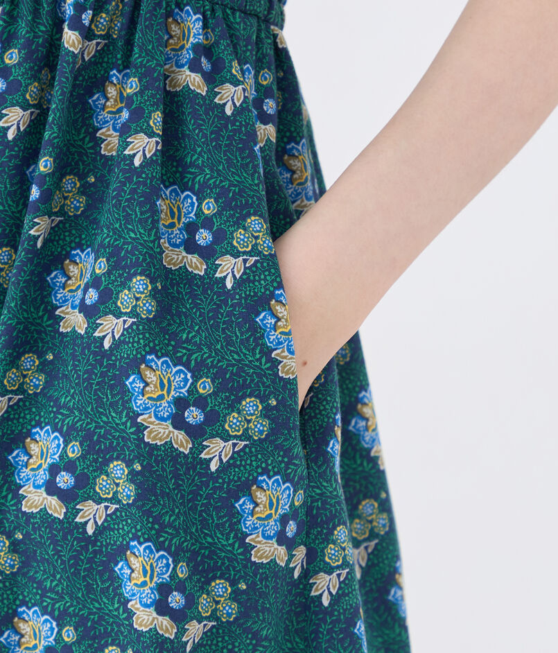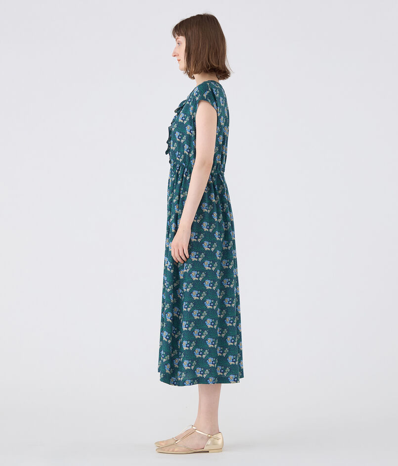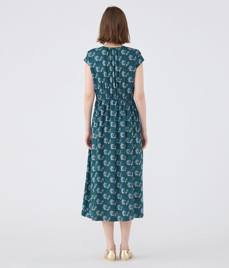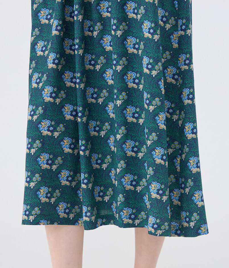 とろみのある肌触りの良いレーヨン素材に、大ぶりのフラワーモチーフを全面にプリントしたワンピース。