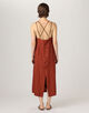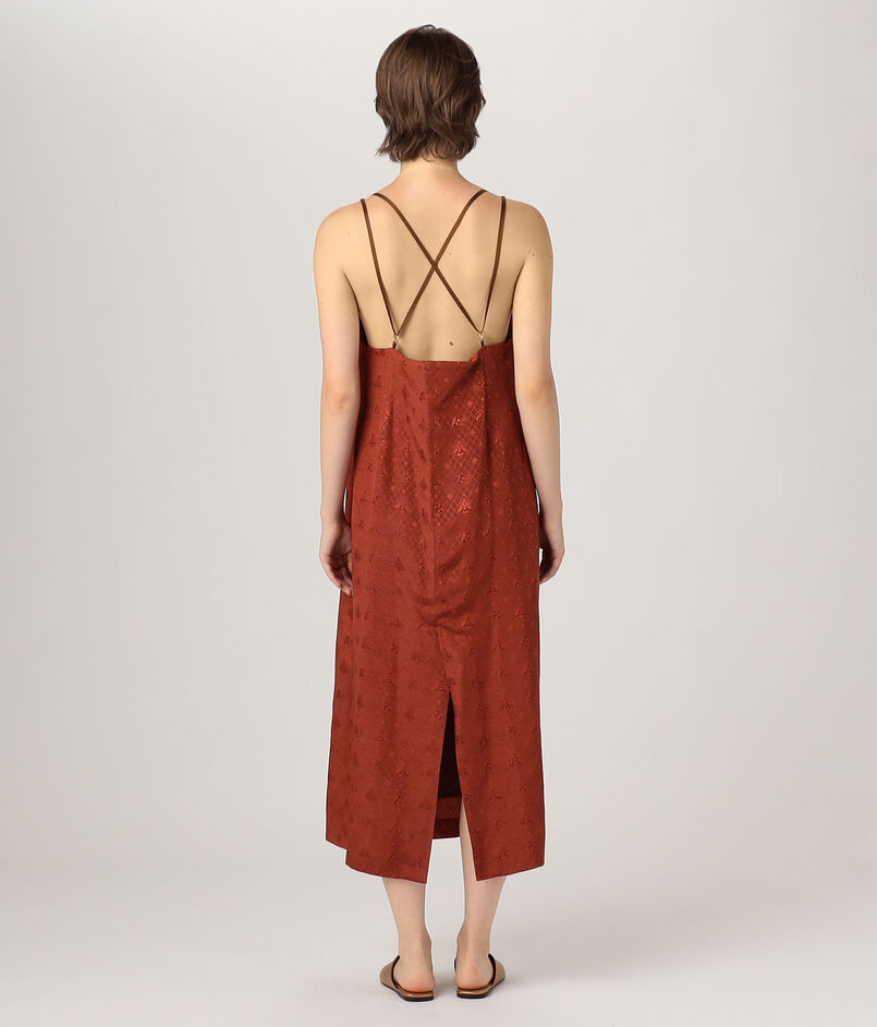 ワンピースは裾に向かってすとん落ちるストレートシルエットに長めの丈感でリラックスして着用できる一着。