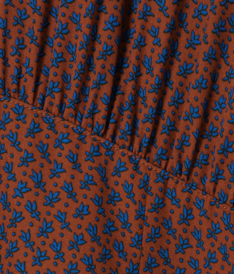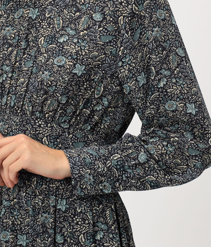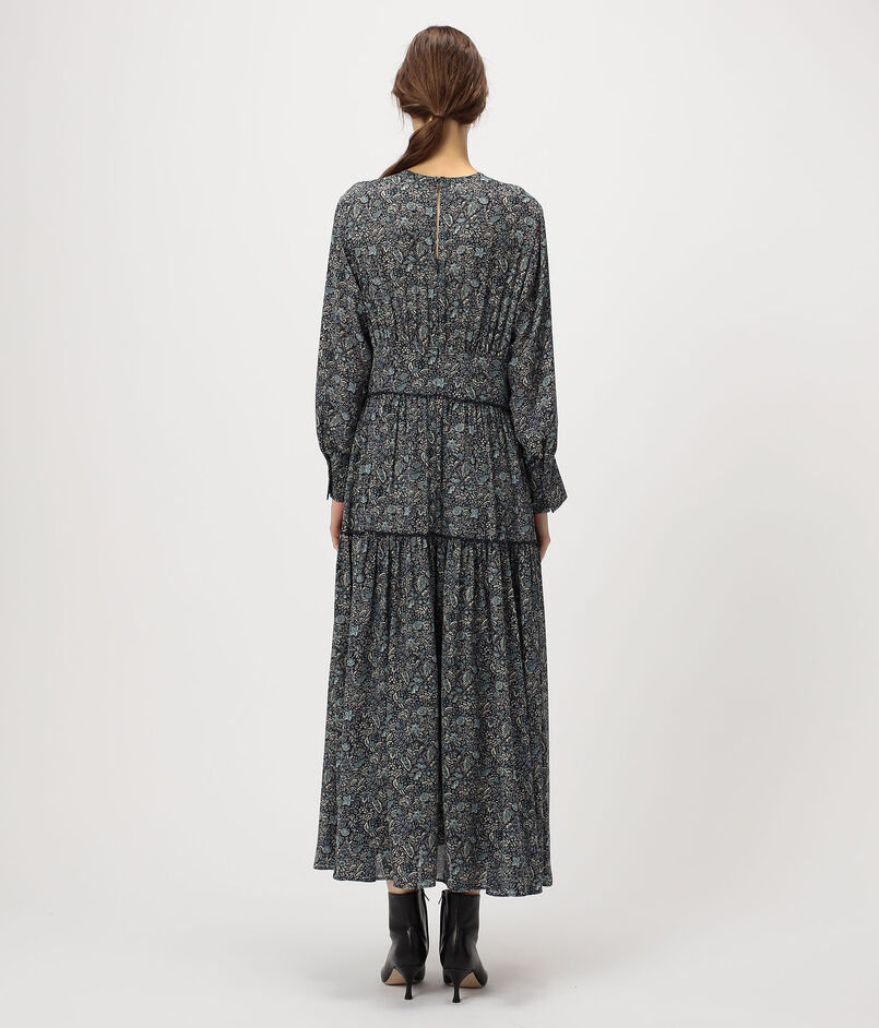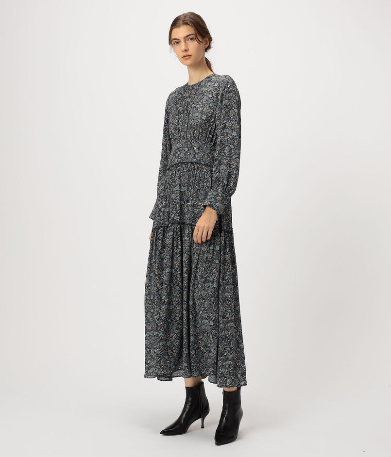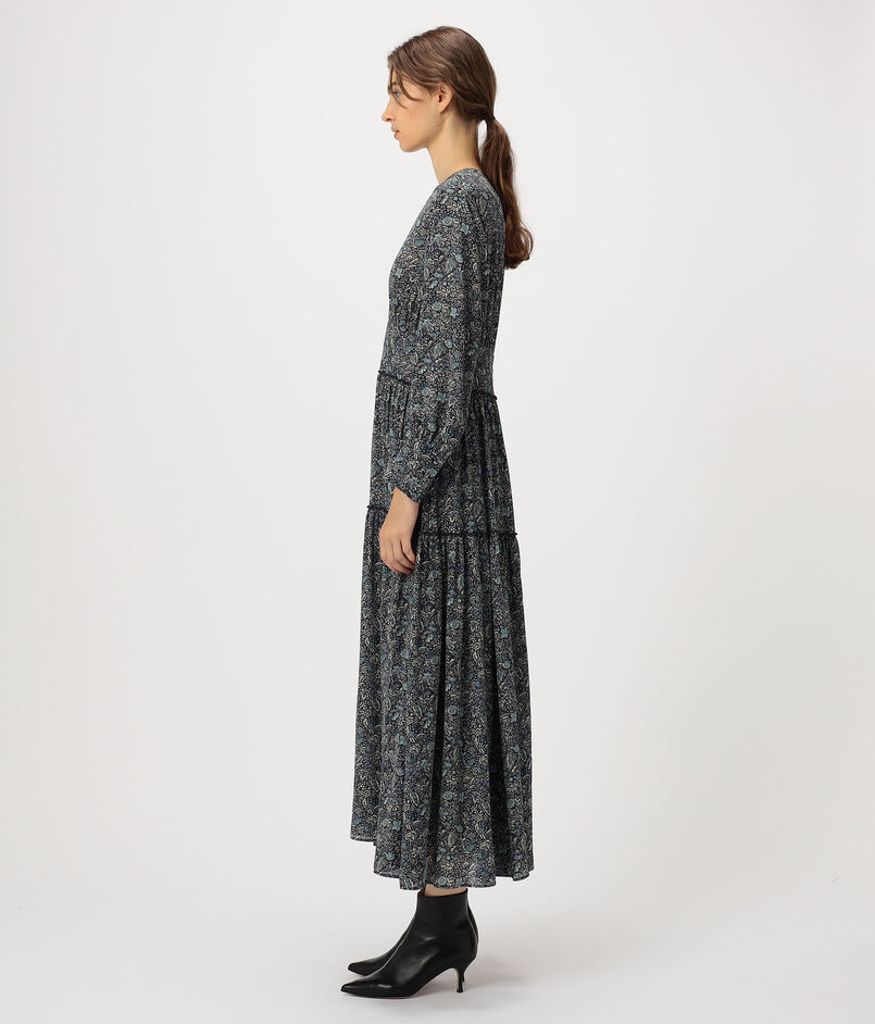 表情のあるジョーゼット素材にプリントを施すことで、細かな柄と色の重なりを美しく表現しています。