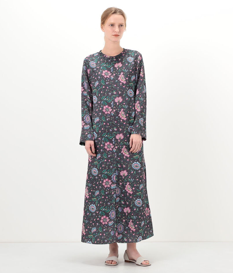 ポリエステルサテンプリント ソフトマーメイドワンピース